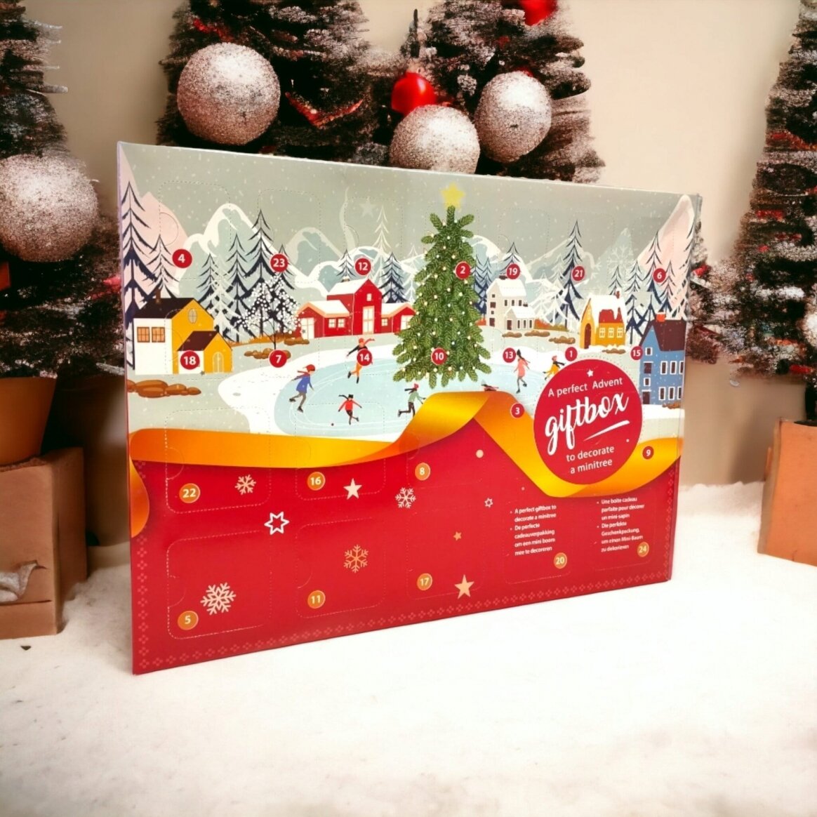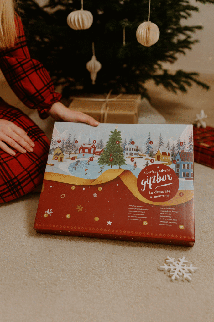 Tradiciškai Advento kalendorius padeda skaičiuoti dienas iki Kalėdų. Tačiau „Giftbox“ koncepcija yra kur kas platesnė – čia kiekviena Advento diena turi savo mažą istoriją, nes už kiekvieno langelio slepiasi vis kitoks žaisliukas, skirtas dekoruoti mini Kalėdų eglutę. Tai reiškia, kad vaikas kiekvieną rytą gauna naują mini dekoraciją, o per visą Advento laikotarpį sukuria savo asmeninę, įspūdingą šventinę eglutę.