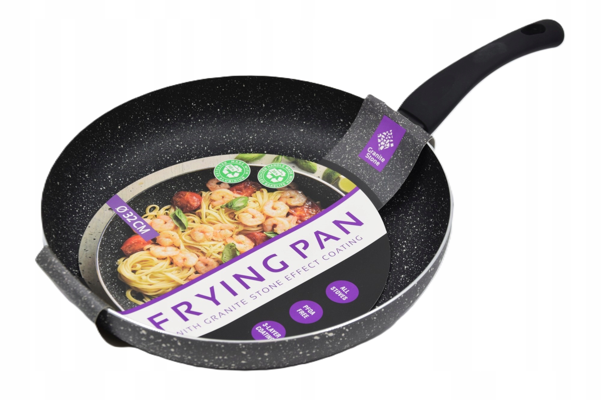 Akmens masės keptuvė „Granite“ – tai virtuvės įrankis, sukurtas tam, kad gaminimas taptų ne tik paprastesnis, bet ir malonesnis. Ši keptuvė iškart išsiskiria savo modernia granitinio akmens efektą primenančia danga, kuri ne tik atrodo stilingai, bet ir pasižymi išskirtiniu funkcionalumu. Jeigu ieškai keptuvės, kuri tarnautų ilgus metus, būtų patvari, lengvai prižiūrima ir užtikrintų kokybišką kepimo rezultatą – tai vienas geriausių pasirinkimų.