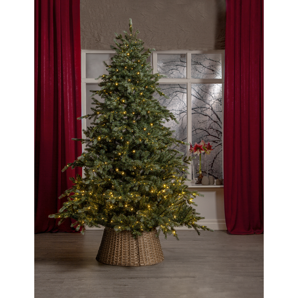 Ne ką mažiau įspūdingas yra eglės apšvietimas. Eglutėje jau integruota net 700 LED lempučių, kurios skleidžia šiltą baltą šviesą (3300K spalvinė temperatūra). Šis tonas yra itin artimas natūraliai šviesai, todėl kambaryje ar lauko erdvėje sukuriamas jaukumo, ramybės ir prabangos pojūtis. Lemputės išdėstytos taip, kad eglė šviestų tolygiai, o šviesa atsispindėtų nuo tankių šakelių sluoksnių, sukurdama švytėjimo efektą. Tai reiškia, kad eglės nereikia papildomai puošti girliandomis – ji pati spindi kaip prabangus meno kūrinys. Tačiau norint dar labiau suasmeninti dekorą, galima pridėti žaisliukų ar aksesuarų, kurie tik dar labiau pabrėš eglės grožį.