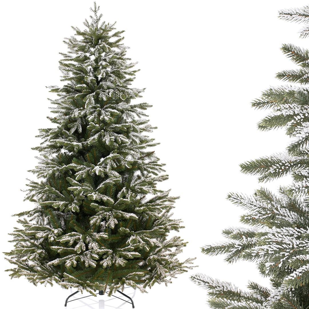 Dirbtinė eglutė „Snowfall“ – 240 cm aukščio PE + PVC eglė su sniegeliu ir metaliniu stovu. Autentiškas, prabangus ir tvarus Kalėdų grožis.