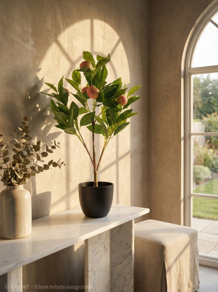 Vienas svarbiausių dirbtinio augalo privalumų – visiškas patogumas. Nereikia galvoti apie laistymą, saulės šviesą ar temperatūrą. Augalas visuomet atrodo tvarkingas ir „gyvas“, net jei patalpa yra tamsesnė, be natūralios šviesos. Tai ypač aktualu biurams, koridoriams, vonios kambariams ar komercinėms erdvėms, kur gyvi augalai dažnai neišgyvena.
