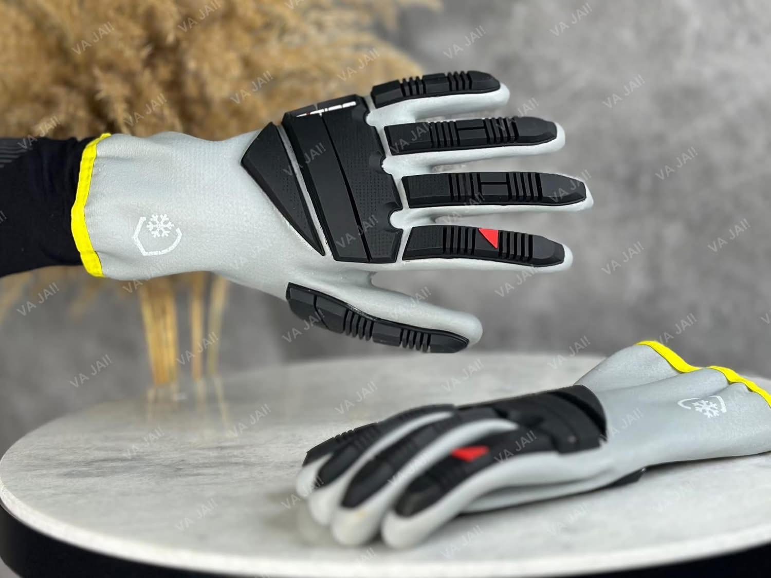 - Pirštinės yra atsparios smūgiams ir turi sustiprintą nugarėlės apsaugą.