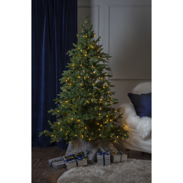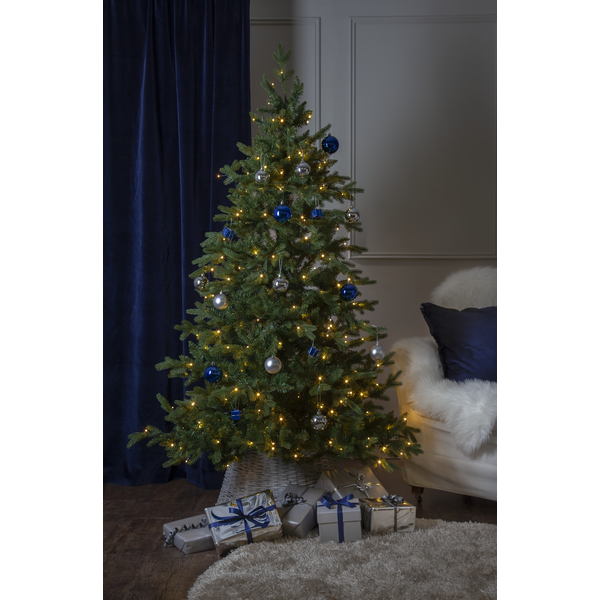 Eglutė aprūpinta 270 šiltai baltų LED lempučių, kurių spalvos temperatūra 2700K – tai jauki, žvakių šviesą primenanti spalva.