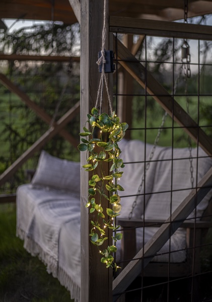 - Pakabinkite terasoje ar pavėsinėje – subtilus švytėjimas sukurs romantišką vakaro nuotaiką.