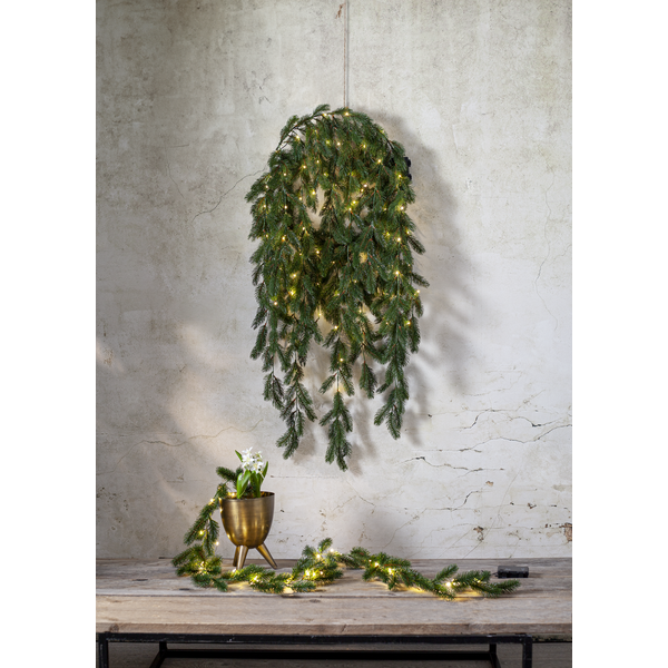 Eglės šakų LED girlianda „Erna“ – 180 cm ilgio, su 30 šiltai baltų LED, PE šakelėmis, laikmačiu ir baterijomis maitinama dekoracija.