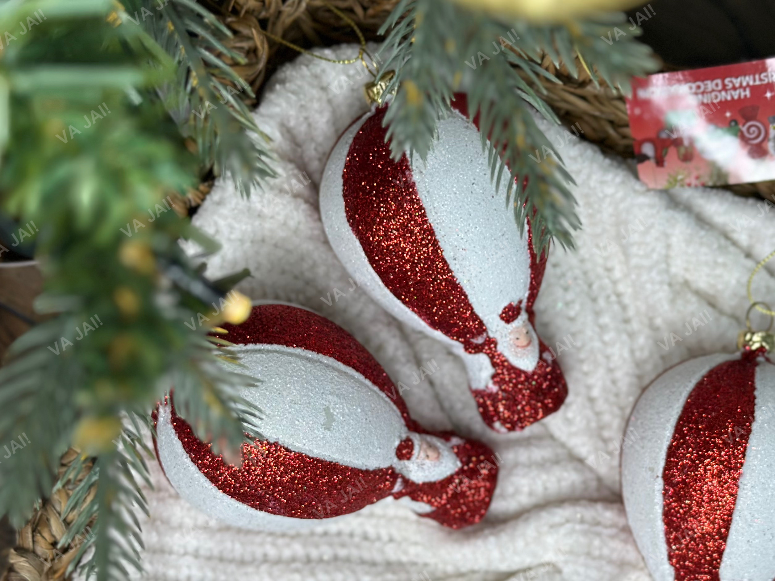 - Eglutės puošmena: kabinkite ant šakos kaip ryškų akcentą – puikiai dera šalia kitų raudonų ir baltų dekoracijų.