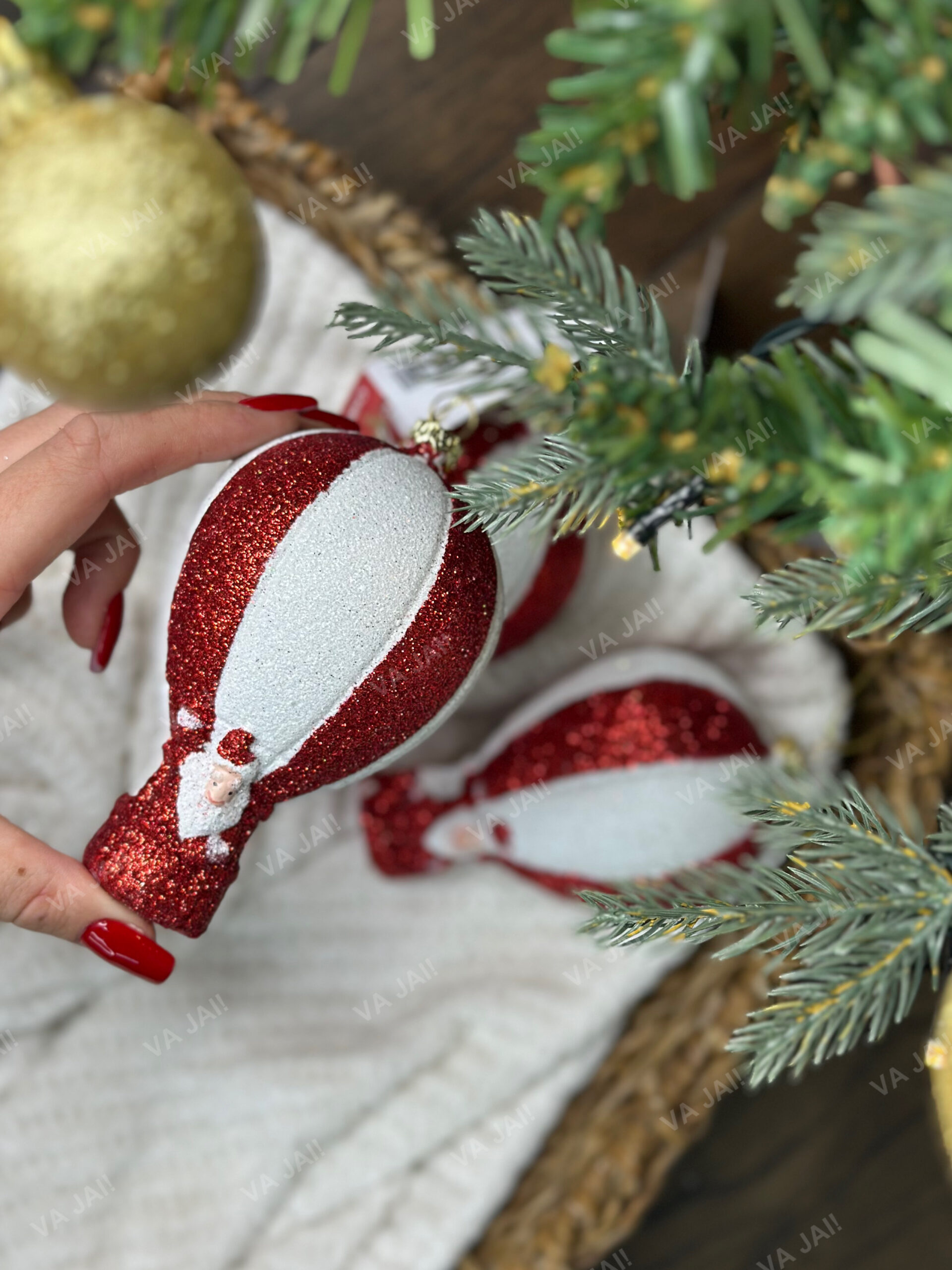 - Išskirtinis dizainas: raudonai baltas oro baliono ornamentas su smagia Kalėdų senelio figūrėle – išskirtinis pasirinkimas jūsų eglutei.