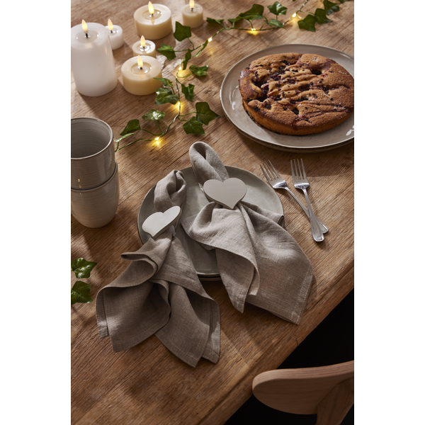Širdelės taip pat puikiai tinka ir stalo dekorui. Pavyzdžiui, jas galima naudoti kaip servetėlių laikiklius ar kaip mažus šventinius akcentus ant lėkščių – taip sukuriama išbaigta, harmoningai sukomponuota šventinė atmosfera. Ant medinio ar lino stalo, tarp žvakių šviesos ir švelnių švieselių, tokios detalės atrodo tiesiog nepaprastai elegantiškai.
