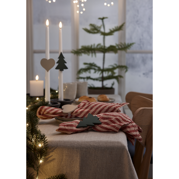 Dar vienas didelis privalumas – universalumas. Šie aksesuarai dera ne tik prie Kalėdinio dekoro, bet ir prie kitų sezonų interjero sprendimų: pavasario stalui, vestuvių dekorui ar net Valentino dienos aplinkai. Tai ne vien sezoninė, o ilgalaikė interjero detalė, kuriai visada atsiras vietos.