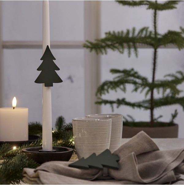 Tinka naudoti tiek LED žvakėms, tiek įprastoms Advento žvakidėms. Klasikinė eglutės forma – simbolis, atspindintis Kalėdų dvasią, namų šilumą ir šviesos pergalę prieš tamsą. Nors aksesuaras atrodo subtiliai, jo efektas žvakių kompozicijoje yra ryškus – suteikia žvakidei išbaigtumo ir stilingo dizaino įspūdį.