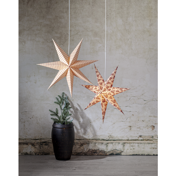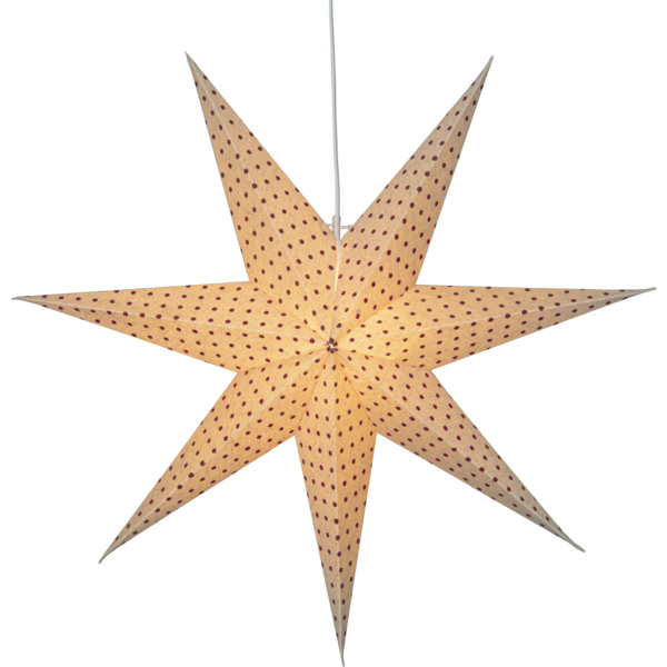 Popierinė žvaigždė „Cotton“ – 60 cm, smėlio spalvos su raudonais taškeliais, FSC® sertifikuota. Sukuria šiltą, jaukią Advento šviesą namuose.