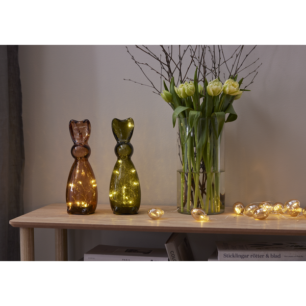 Stiklinė LED dekoracija „Harry“ – tai subtilus šviesos, stiklo ir dizaino derinys, sukurtas tam, kad bet kuri erdvė įgautų šilumos, jaukumo ir elegancijos. Ši dekoratyvinė figūrėlė pagaminta iš tamsiai žalio stiklo, kuris savo tonais primena gamtos ramybę ir pavasario atgimimą.