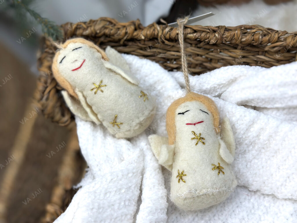 Kalėdos – tai laikas, kai net ir mažiausios detalės sukuria didžiausius prisiminimus. Tai ne tik šviesos ir muzika, bet ir simboliai – tie, kurie įkūnija šilumą, saugumą ir stebuklą. Vienas iš tokių – „Angeliukas“ – veltinis eglutės žaisliukas, kuris tarsi tyliai stebi jūsų šventę, saugo namų ramybę ir neša gerumo žinutę.