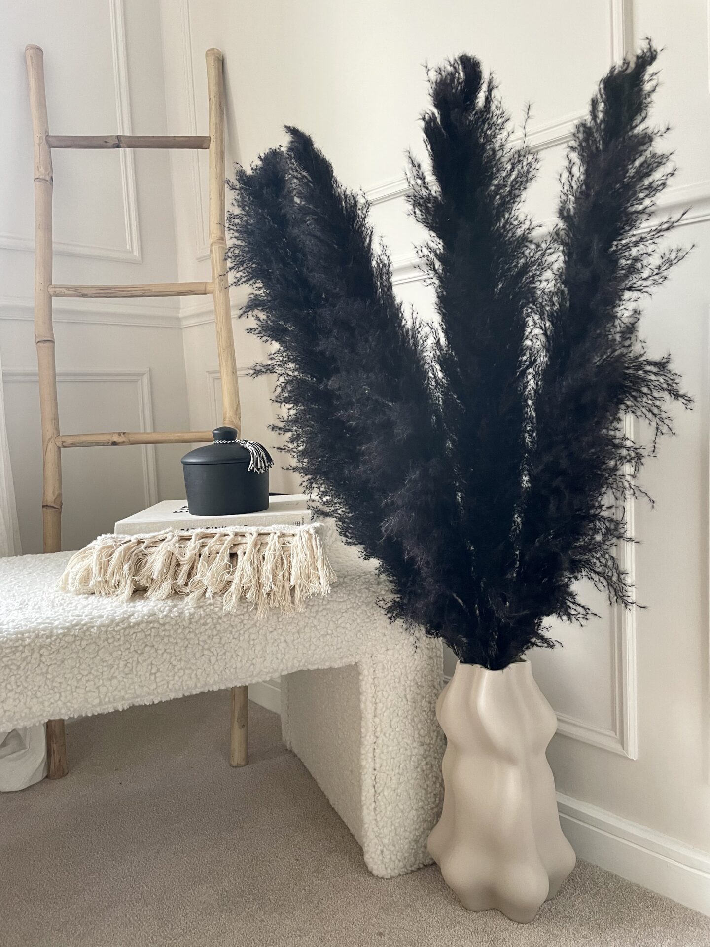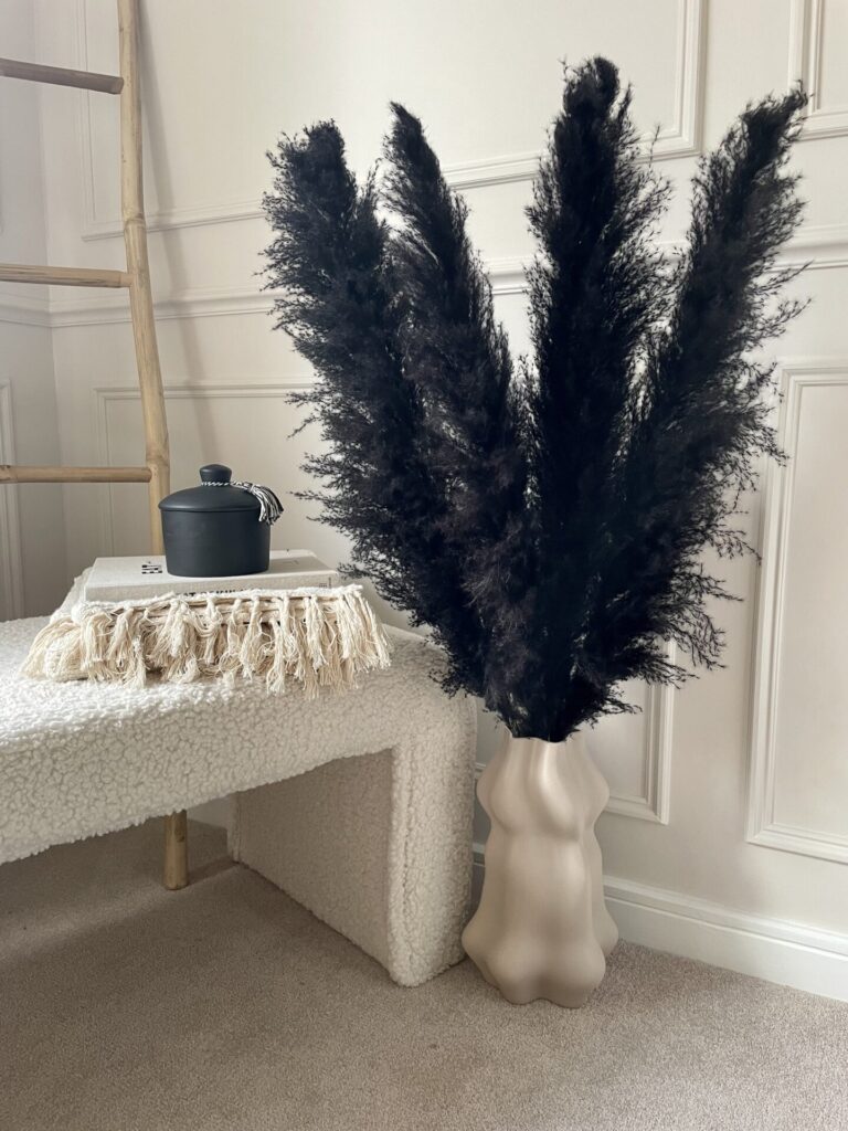 Natūralios džiovintos juodos pampų smilgos – išraiškingas, priežiūros nereikalaujantis dekoro akcentas, suteikiantis interjerui modernumo, gylio ir elegancijos.