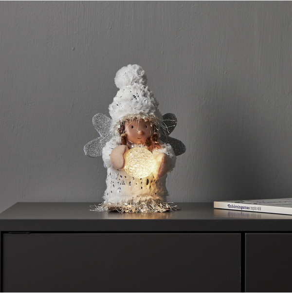 Kadangi dekoracija veikia iš 3 AAA baterijų (neįtrauktos), ją galima statyti bet kurioje vietoje, be jokių elektros laidų. Tai suteikia maksimalų lankstumą – angelas gali keliauti kartu su jūsų šventinėmis kompozicijomis, būti naudojamas ant padėklo kartu su žvakėmis, papuošti vaikų kambarį arba tapti jaukia dovana. Šis dekoras yra vienas iš tų, kurie niekada nenusibosta ir tampa dalimi šeimos šventinio ritualo.