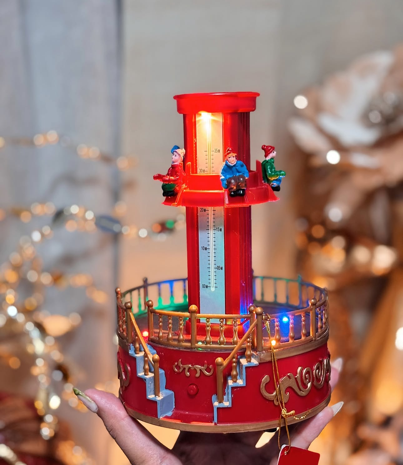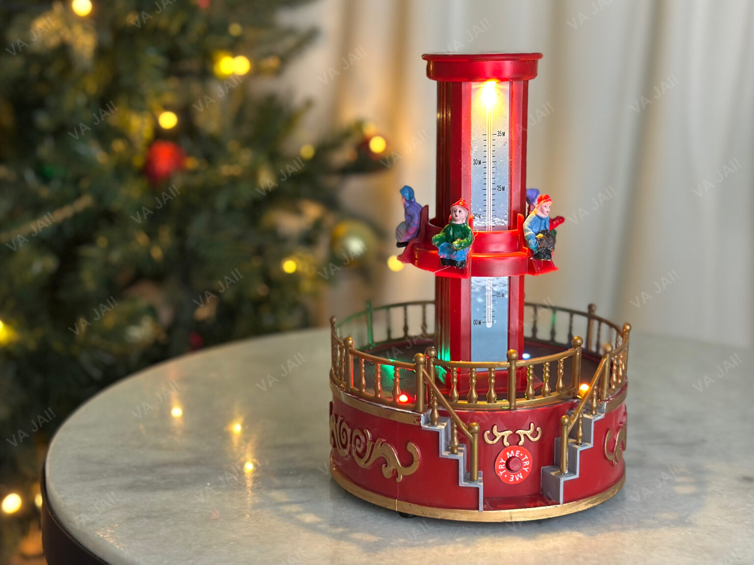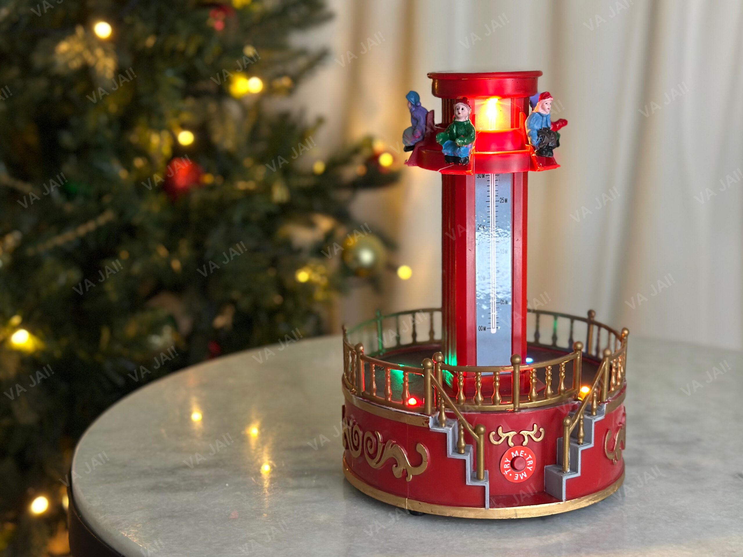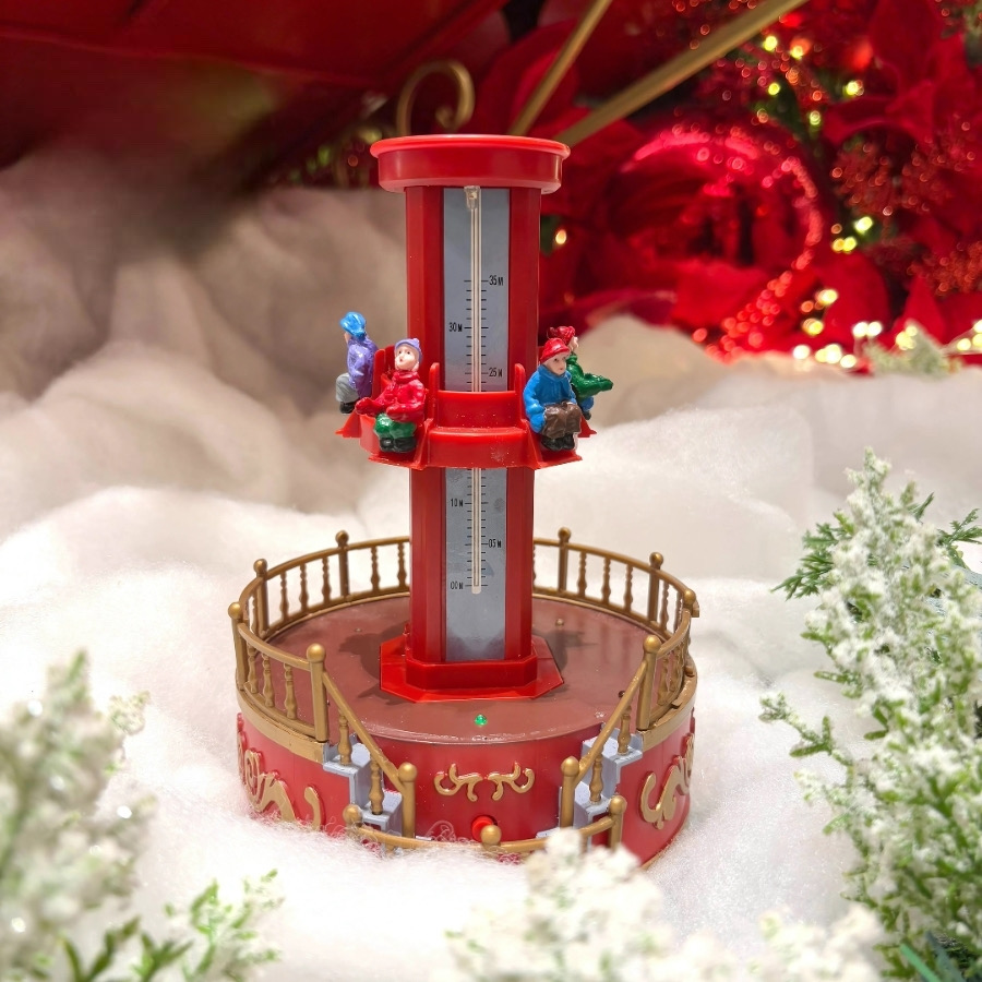 Šis unikalus kalėdinis akcentas atkartoja vieną įspūdingiausių atrakcionų – vertikaliąją „laisvo kritimo“ bokšto pramogą. Žmogeliukai, įsitaisę ant pakylos, kyla aukštyn ir tuomet leidžiasi žemyn, sukurdami gyvą judesį, kuris traukia akį ir džiugina tiek mažuosius, tiek suaugusius žiūrovus. Tai išskirtinis pasirinkimas, kuris iš karto tampa dėmesio centru bet kurioje šventinėje erdvėje.
