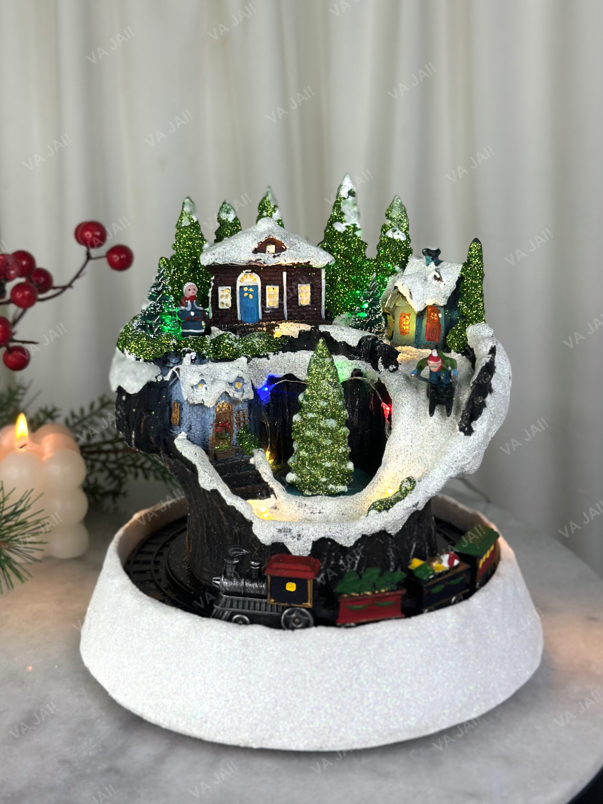 Kalėdinis miestelis „Halden“ – prabangi polirezino dekoracija su LED apšvietimu ir judančiu traukiniu. Stebuklingas akcentas jūsų šventiniam interjerui.