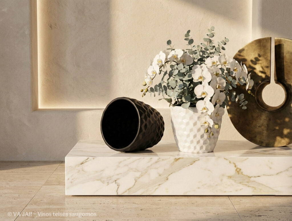 Abi spalvos lengvai derinamos su įvairiais augalais: nuo žaliuojančių fikusų ir sukulentų iki ryškiaspalvių gėlių ar dekoratyvinių šakų.