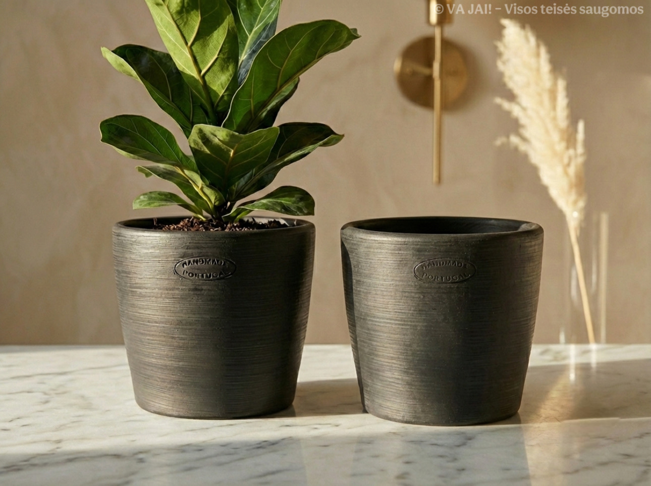 Rankų darbo juodas keraminis vazonas iš Portugalijos – masyvus, elegantiškas ir ilgaamžis pasirinkimas jūsų kambarinėms gėlėms.