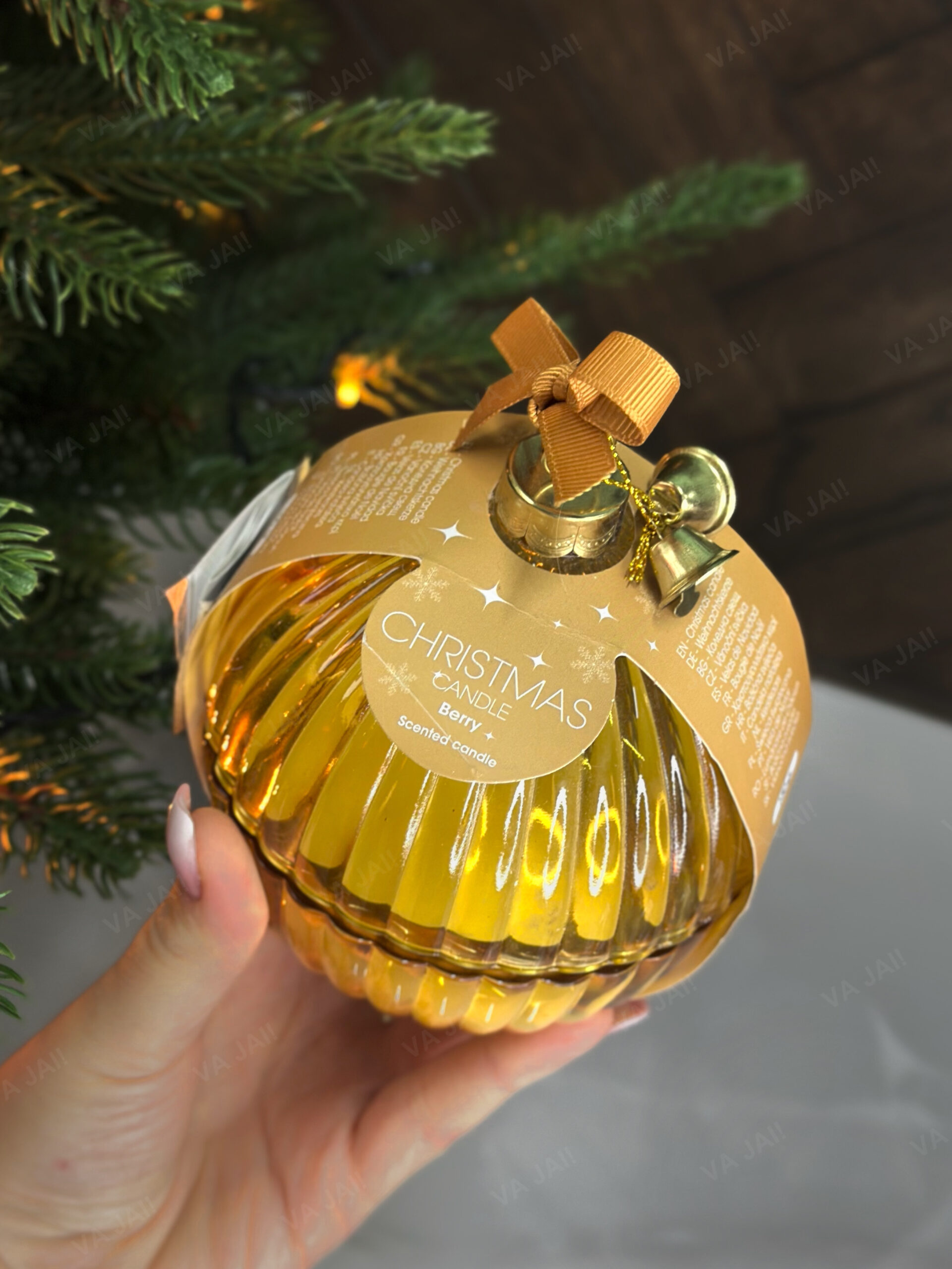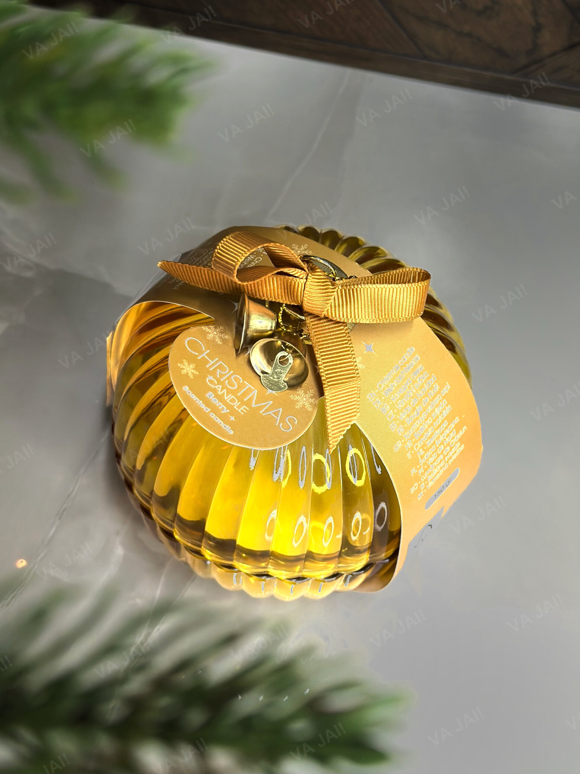 Papildoma estetinė detalė – rūpestingai surišta juosta su dekoratyviniais auksiniais varpeliais, kurie suteikia žvakei šventinę, dovaninę išvaizdą. Tai reiškia, kad ši žvakė yra jau paruošta būti įteikta – kaip puiki dovana Kalėdoms, namų šventei, gimtadieniui ar bet kuriai progai žiemos sezono metu. Stiklinis dangtelis ne tik atrodo stilingai, bet ir yra praktiškas – jis saugo žvakę nuo dulkių, padeda ilgiau išlaikyti kvapą ir užtikrina, kad žvakė išliktų nepriekaištinga net ir tada, kai nėra naudojama.