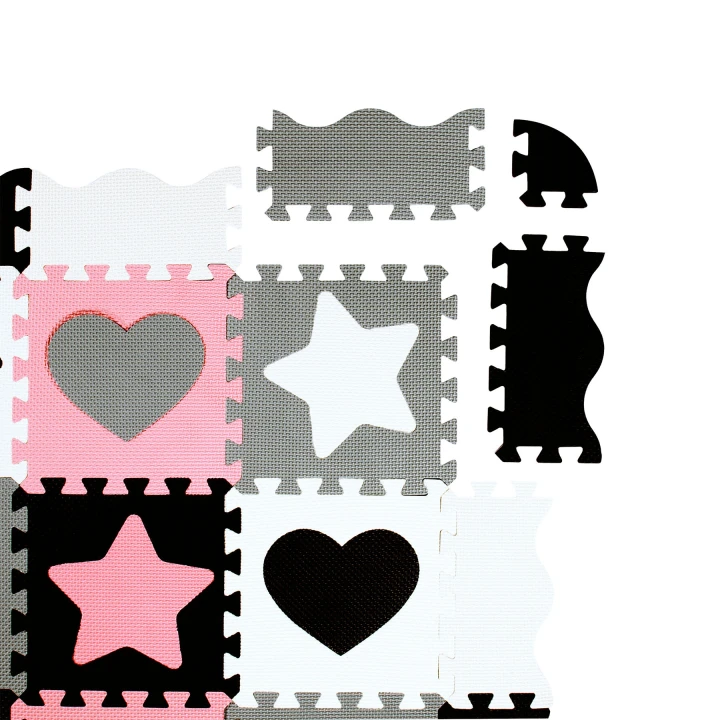 Šis edukacinis kilimėlis sudarytas iš minkštų, tarpusavyje jungiamų kvadratinių detalių, kurias galima dėlioti pagal poreikį. Vaikas gali žaisti ant lygaus kilimėlio, o tėvai – lengvai suformuoti aptvarą su sienelėmis, kurios suteikia papildomo saugumo. Iš tų pačių detalių galima sukurti ir erdvines formas ar kubą – tai paverčia kilimėlį nuolat besikeičiančia žaidimų erdve.
