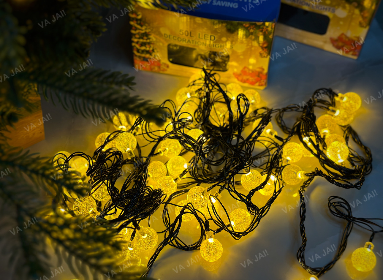 - 50 šiltų LED lempučių – ryškios, bet neerzinančios akims, sukuria jaukią Kalėdinę atmosferą.