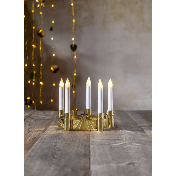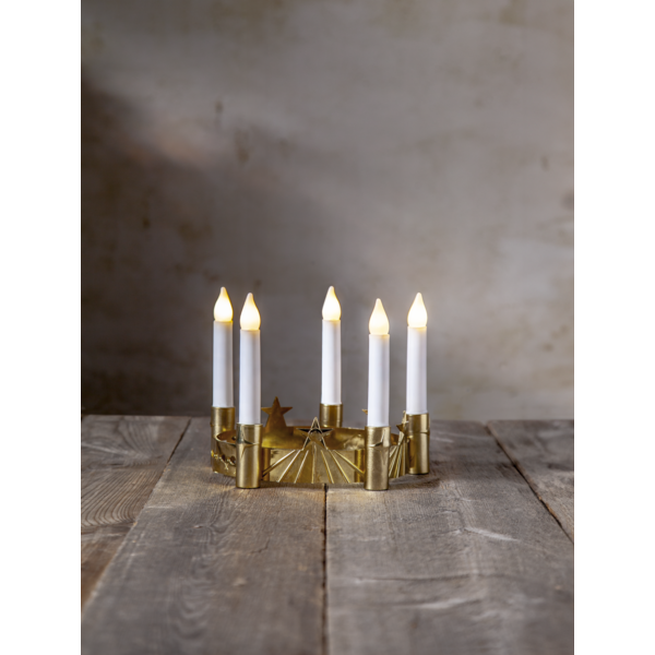 - Šviesos šaltinis: 5 LED žvakės su šilta balta šviesa.