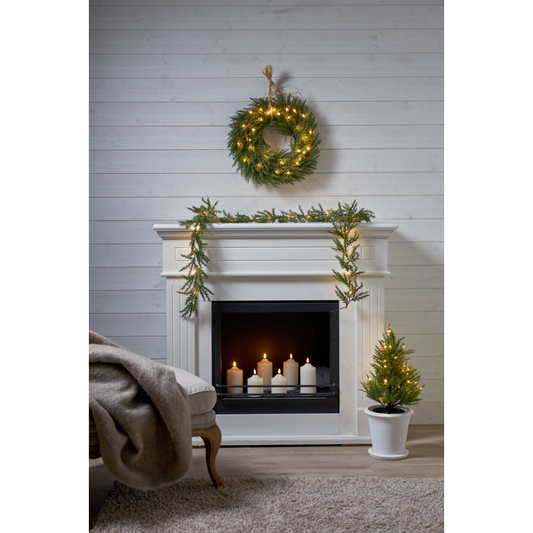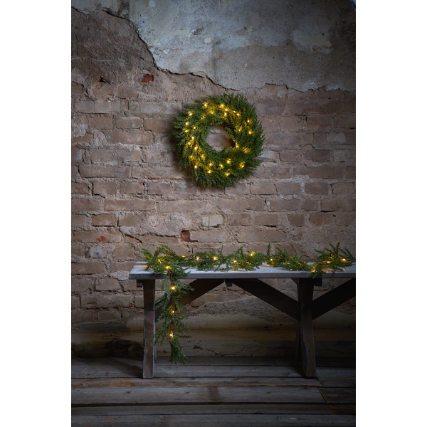 Baterijomis maitinamas vainikas suteikia visišką laisvę kabinti jį bet kur, o integruotas laikmatis užtikrina, kad jis įsijungs ir išsijungs automatiškai, taupydamas energiją ir Jūsų laiką. Jo šiltai balta šviesa sukuria jaukumą tiek viduje, tiek lauke, o IP44 apsauga leidžia nebijoti lietaus ar sniego.