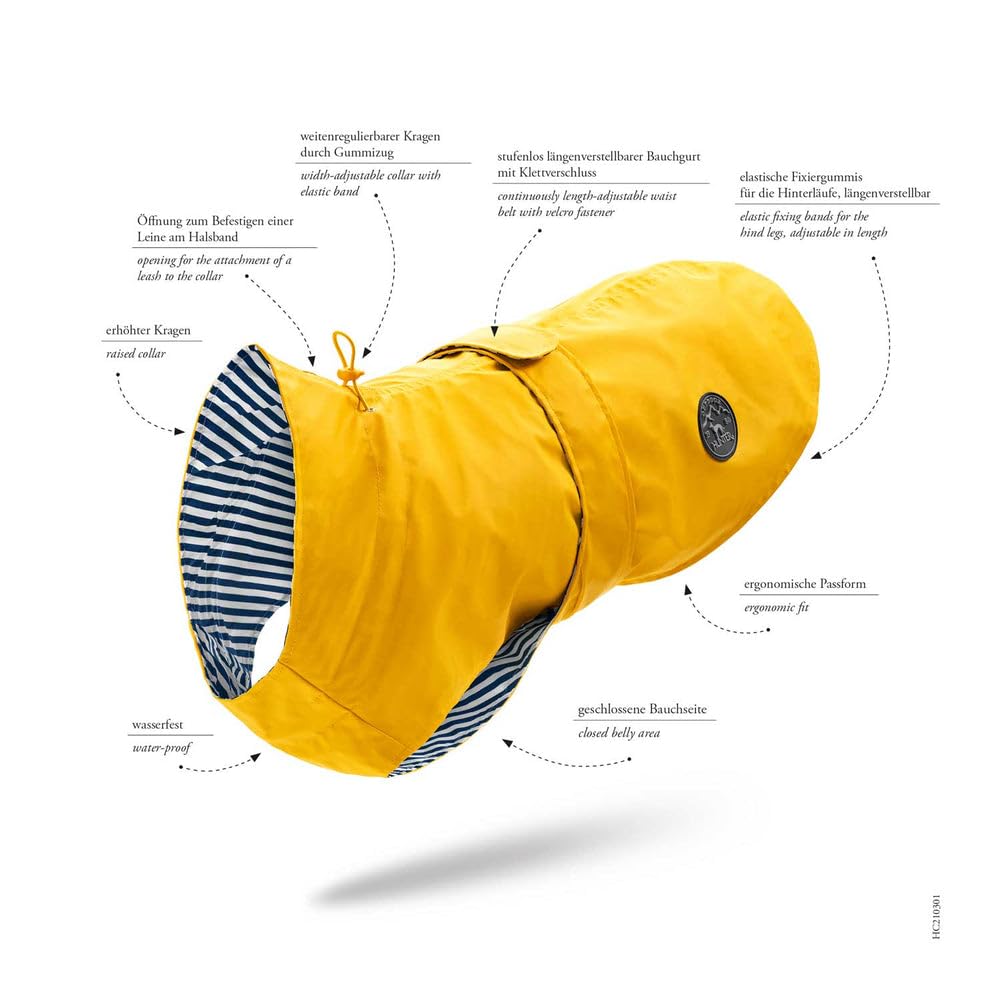 Pagrindinė šio lietpalčio funkcija – apsaugoti jūsų šunį nuo lietaus, vėjo ir purvo. Dėl vandeniui atsparios medžiagos lietus tiesiog nubėga nuo paviršiaus, neįsigerdamas į audinį. Tai reiškia, kad jūsų šuo išlieka sausas net ilgesnių pasivaikščiojimų metu. Be to, vėjo nepraleidžianti struktūra padeda išlaikyti šilumą, todėl lietpaltis puikiai tinka ne tik lietingoms, bet ir vėjuotoms dienoms.