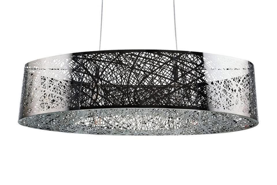 Perforuotas metalinis gaubtas iš šimtų grafiškų išpjovų užtikrina įspūdingą šviesos efektą ant sienų ir lubų, tuo pačiu išlaikydamas subtilią eleganciją.