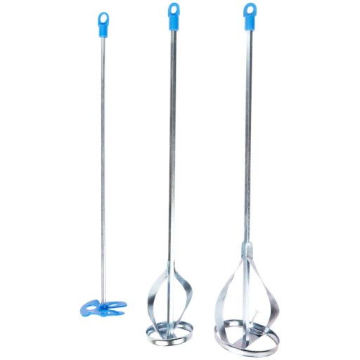 Rinkinį sudaro trijų skirtingų dydžių maišytuvai, todėl vienas komplektas tinka tiek lengviems, skystesniems mišiniams, tiek tirštesnėms medžiagoms. Mažiausias maišytuvas puikiai tinka dažams ir lakams, vidutinis – universaliems mišiniams, o didžiausias – tirštiems glaistams, tinkui ar cementui. Tai reiškia, kad nereikia ieškoti atskirų sprendimų skirtingiems darbams – viskas, ko reikia, jau yra viename rinkinyje.
