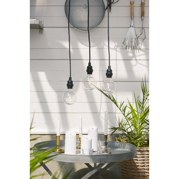 Šis laidas turi E27 lizdą, kuris yra vienas universaliausių ir plačiausiai naudojamų lempučių tipų. Tai reiškia, kad galite pasirinkti įvairias lemputes – nuo klasikinių LED iki dekoratyvinių filament tipo lempučių. Tokia laisvė leidžia kurti skirtingas apšvietimo nuotaikas: nuo švelnios, jaukios šviesos vakariniams pasisėdėjimams iki ryškesnio apšvietimo vakarienėms ar susibūrimams lauke.