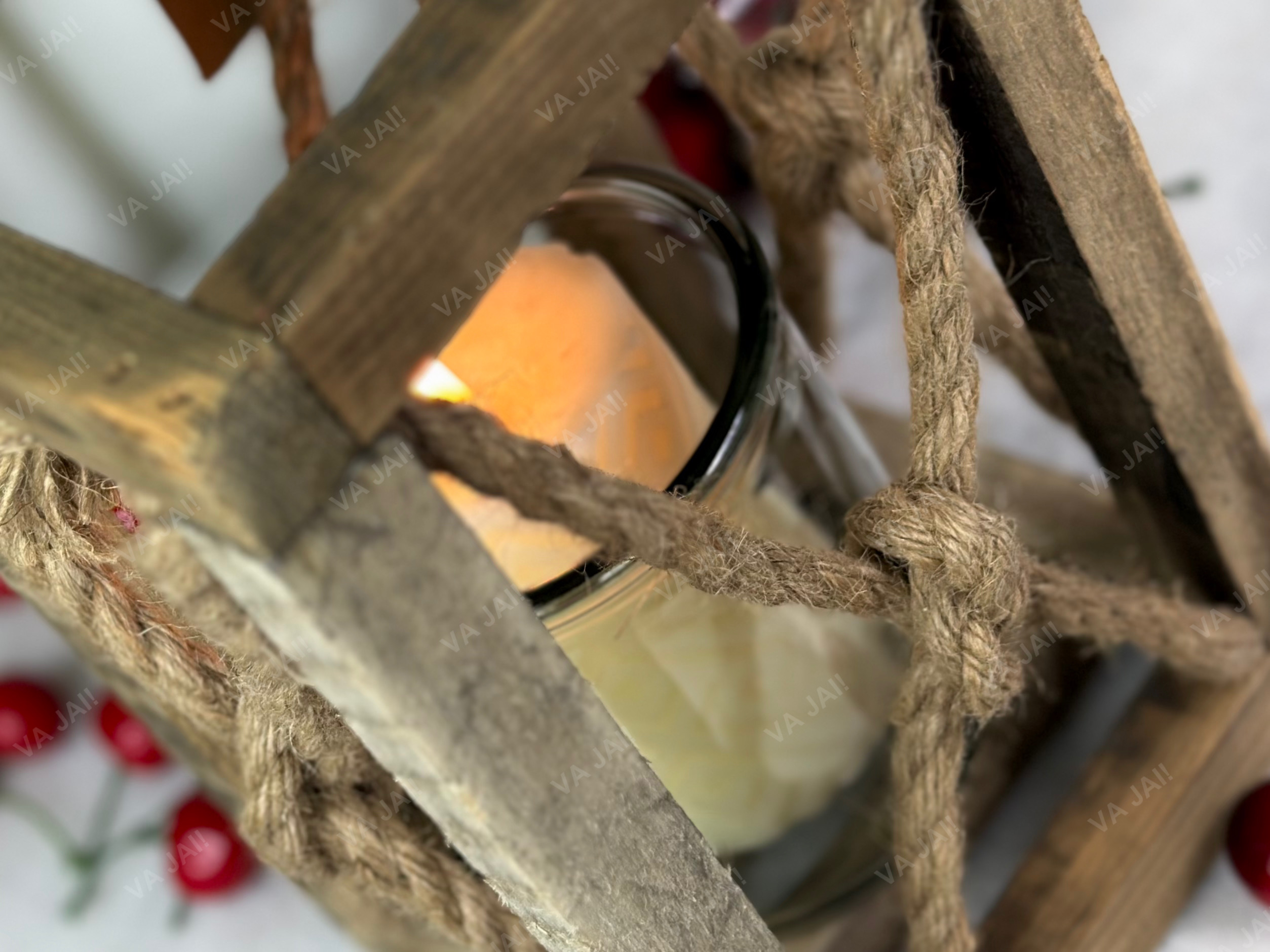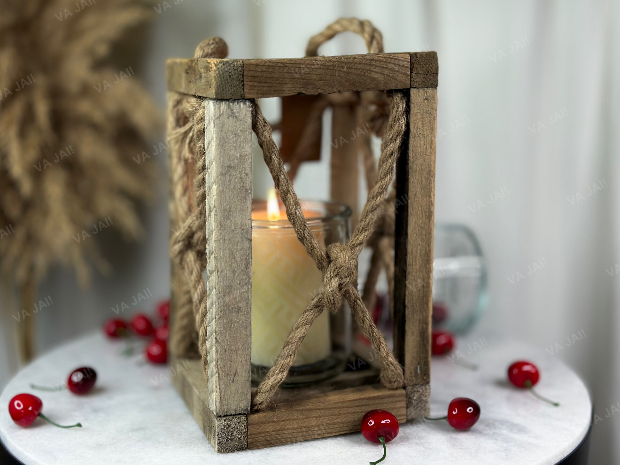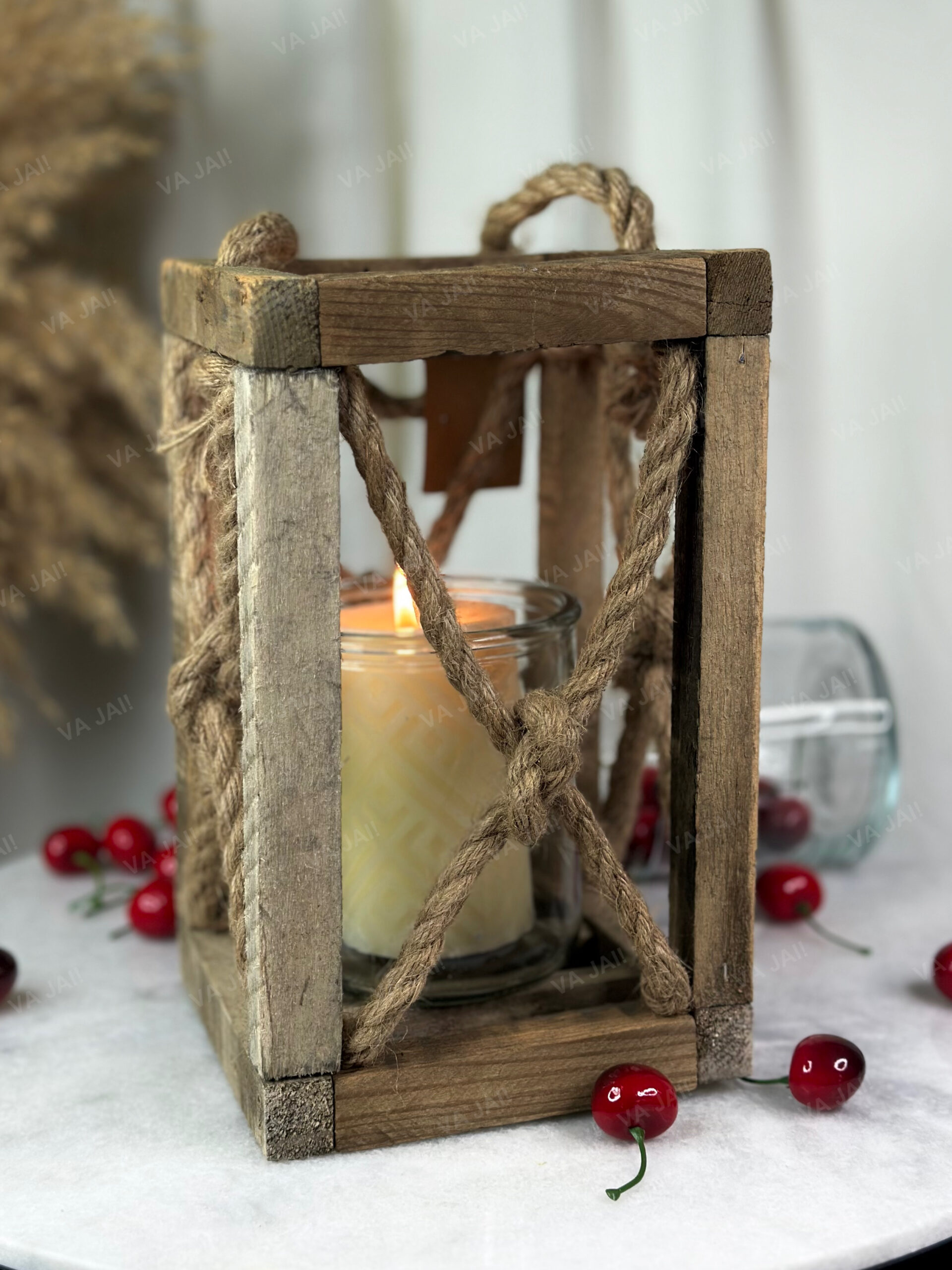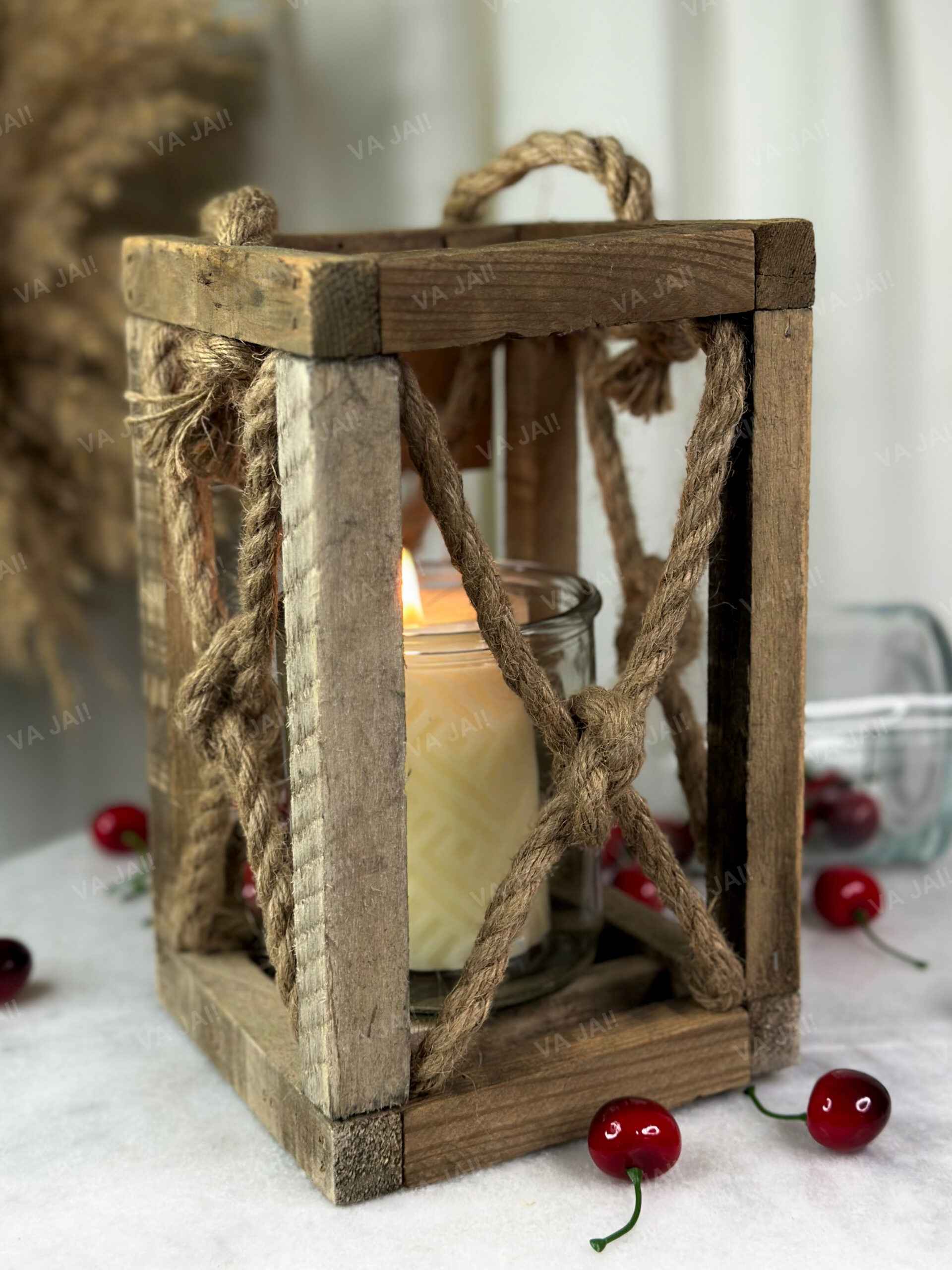 •Žibintas pagamintas iš sendintos medienos ir natūralių virvių.