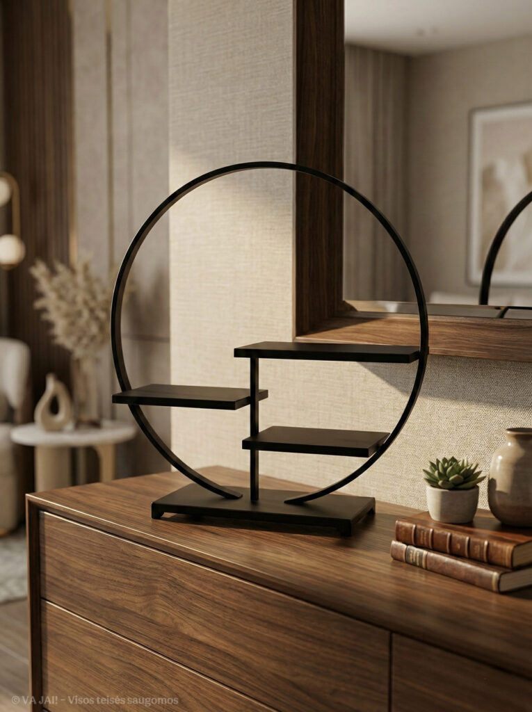 - Asimetriškas lentynėlių išdėstymas – sukuria dinamišką, vizualiai įdomų kompozicinį efektą.