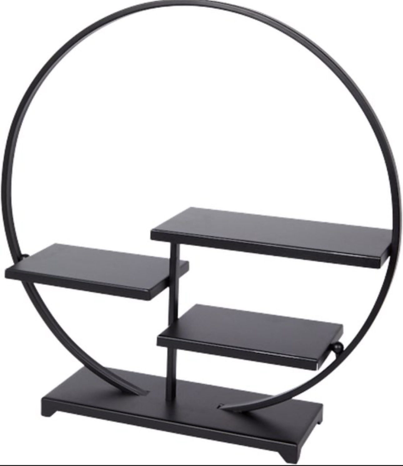 Apvalus rėmas su integruotomis horizontaliomis lentynėlėmis sukuria architektūrinį, šiuolaikišką įspūdį. Matinė juoda spalva pabrėžia konstrukcijos grakštumą ir leidžia šiai dekoratyvinei lentynai lengvai įsilieti į įvairius interjero stilius – nuo modernaus ir industrinio iki skandinaviško ar net klasikinio.