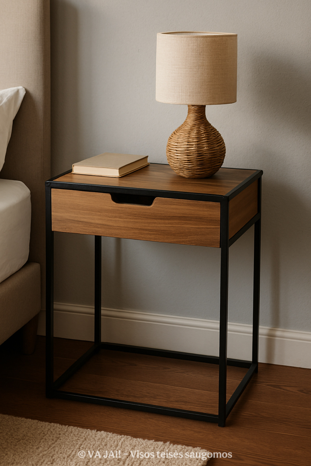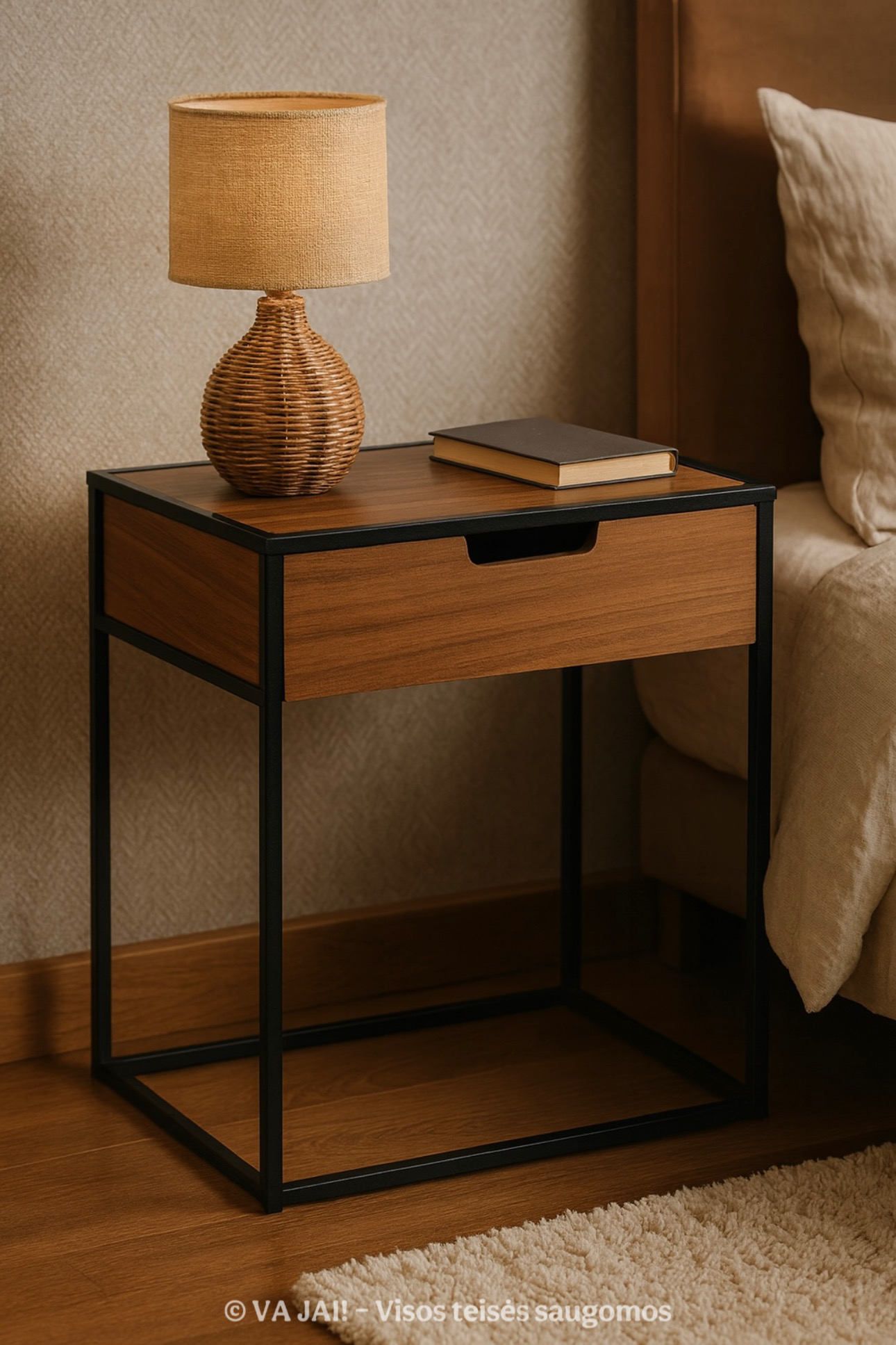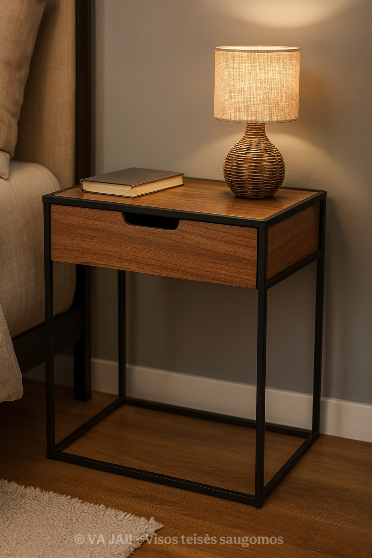 Naktinis staliukas „Alovy“ – tai baldas, sukurtas ne tik patogumui, bet ir estetikai. Jis idealiai tinka tiems, kurie vertina modernų dizainą, subtilų kontrastą bei praktiškus sprendimus kasdienėje aplinkoje. Šis staliukas sujungia du šiuolaikiniuose namuose itin mėgstamus elementus – natūralaus medžio rašto šilumą ir minimalistinį metalo konstrukcijos tvirtumą. Tokia išvaizda suteikia baldui universalumo ir leidžia jį derinti prie bet kokio stiliaus interjero.