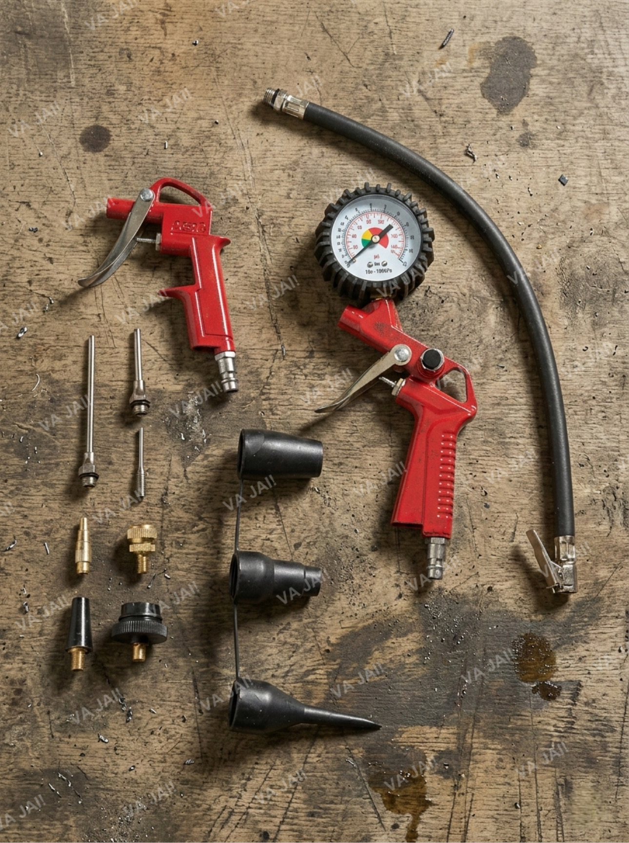 Vienas svarbiausių rinkinio elementų yra padangų pripūtimo pistoletas su manometru. Šis įrankis leidžia tiksliai stebėti oro slėgį padangose ir užtikrinti saugų pripūtimą. Tai ypač svarbu automobilio ar motociklo padangoms, nes tinkamas slėgis padeda išlaikyti gerą sukibimą su kelio danga ir užtikrina saugesnį vairavimą.