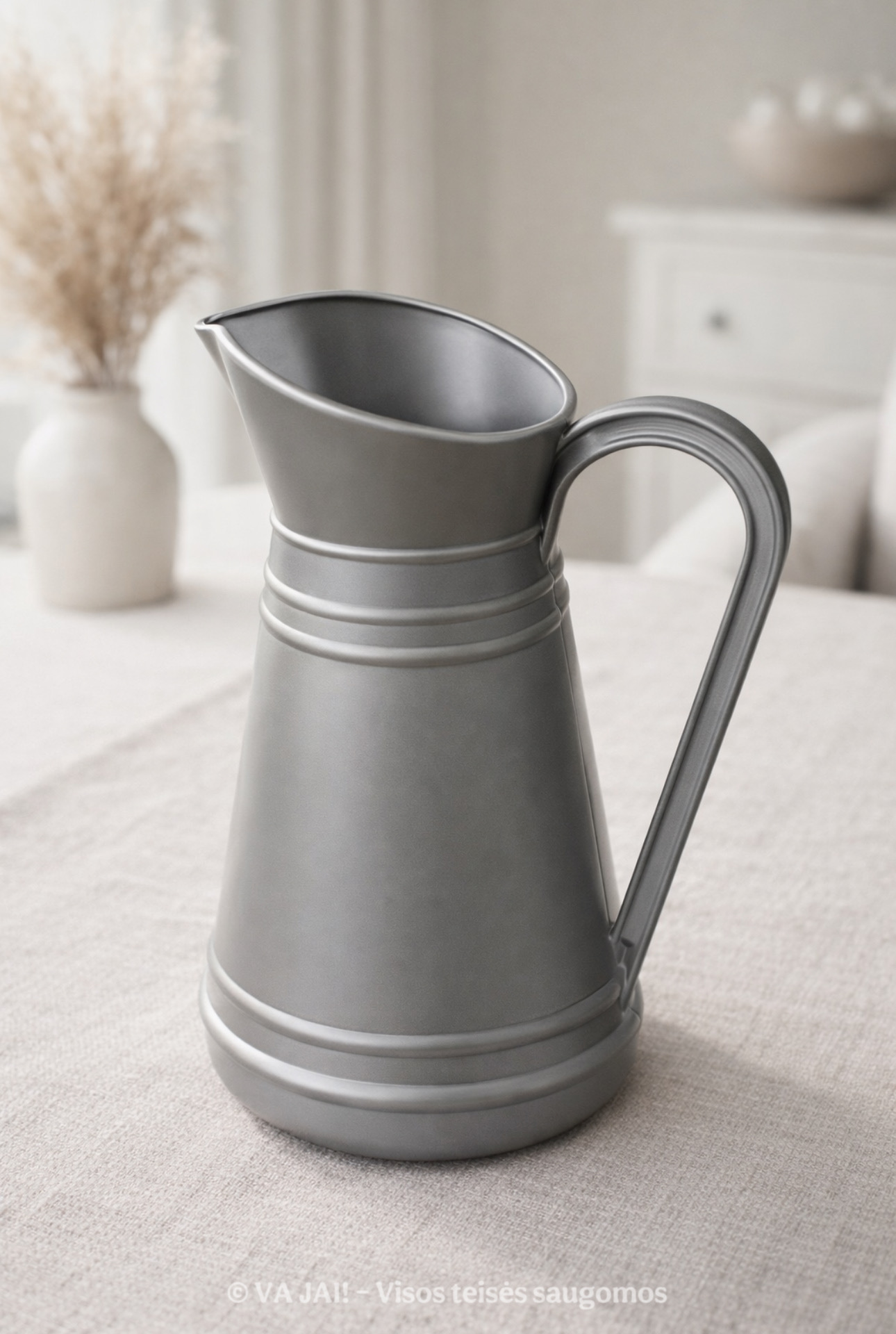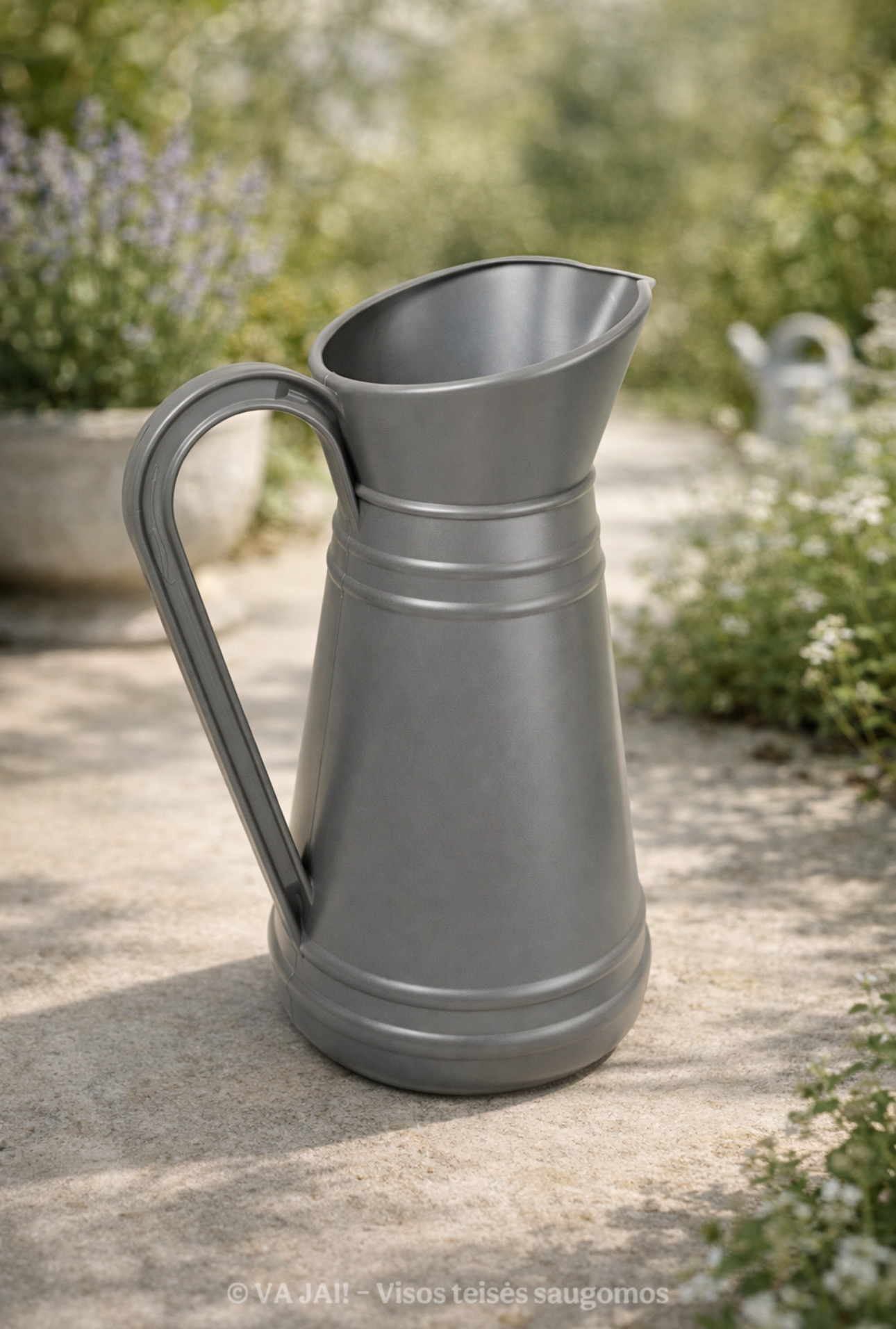 Neutralus, pilkas atspalvis suteikia laistytuvui modernumo ir praktiškumo. Jis dera prie įvairios aplinkos – tiek šiuolaikiško interjero, tiek natūralaus sodo vaizdo. Tai ne ryški, akis rėžianti detalė, o ramus, estetiškas įrankis, kuris savo funkciją atlieka tyliai ir patikimai.