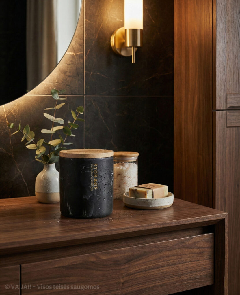 - Bambukinis dangtelis, įnešantis šilumos ir natūralumo kontrastą.