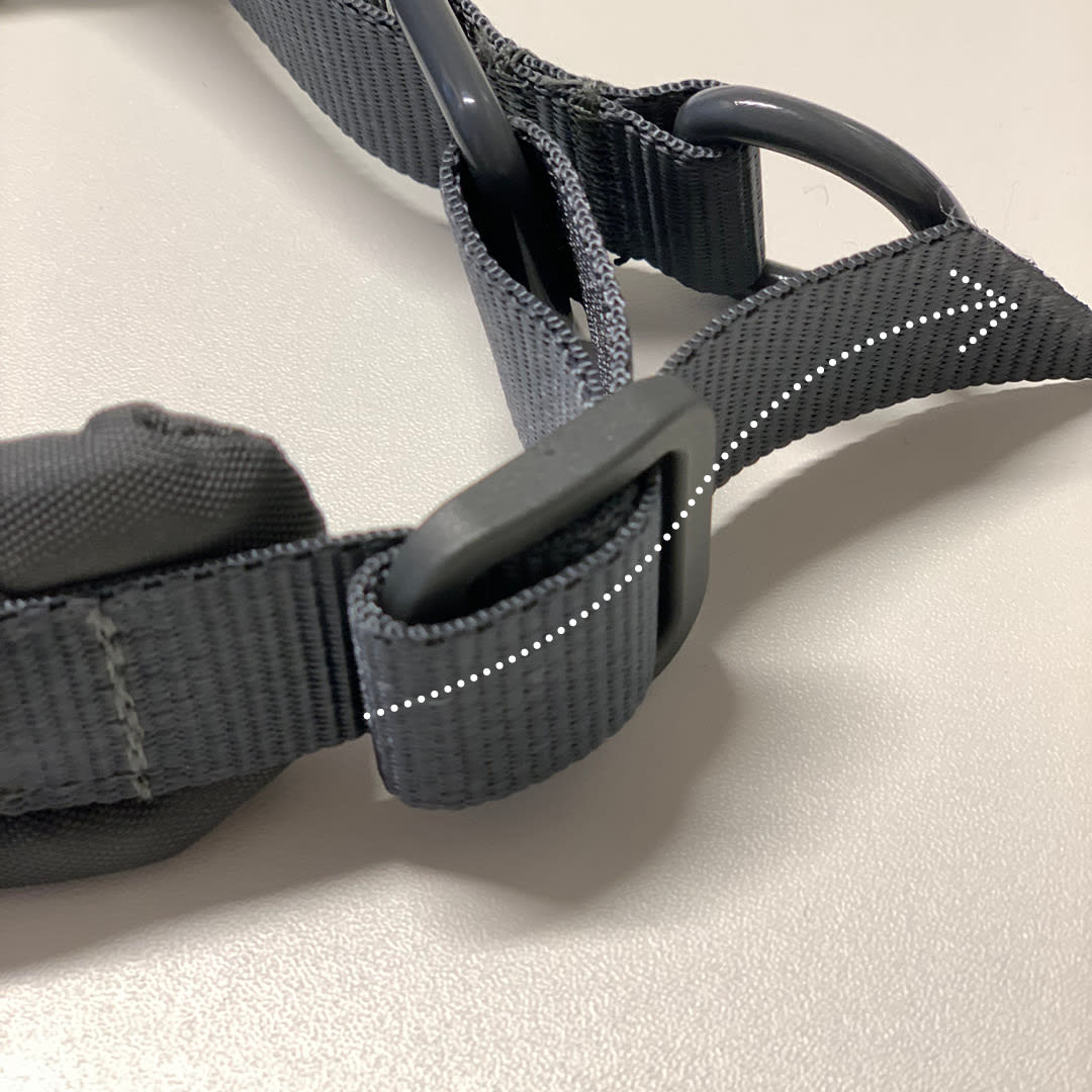 - Medžiagos: tvirta nailono juosta, porolono paminkštinimas, sustiprintos siūlės