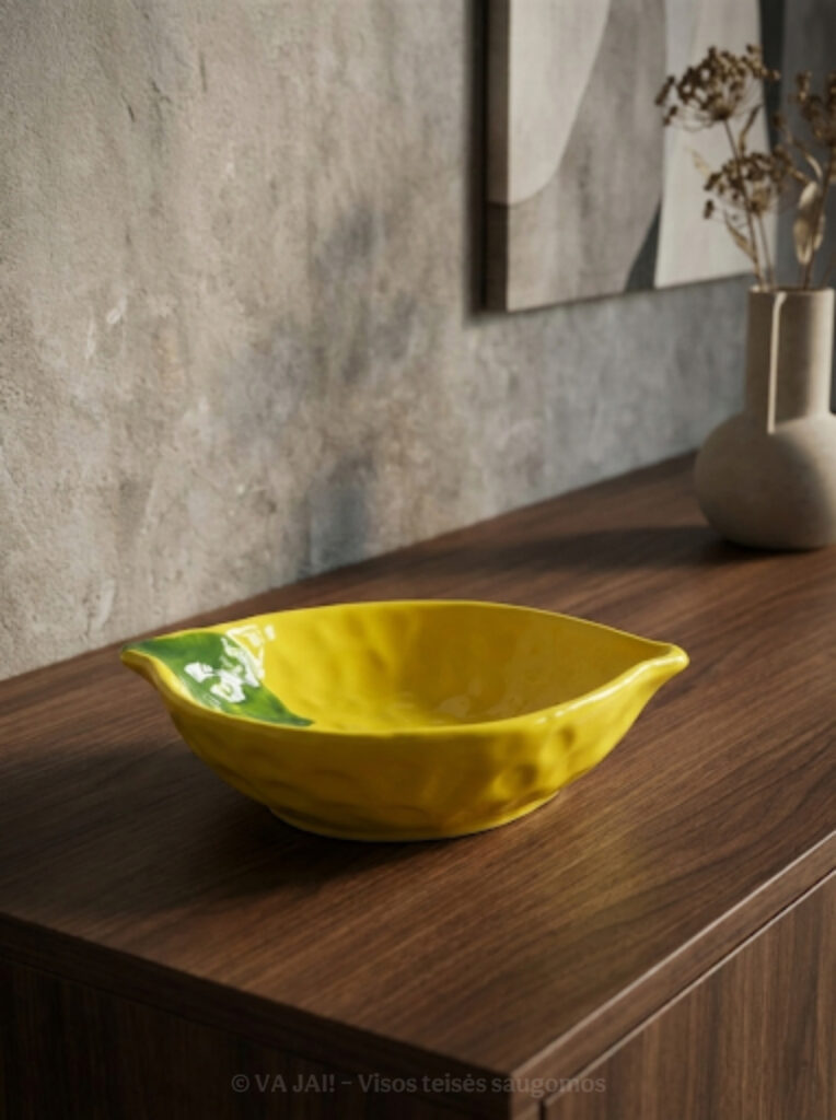 Šis dekoratyvinis serviravimo dubuo – tai daugiau nei tiesiog indas. Tai akcentas, kuris kuria nuotaiką, pasakoja istoriją ir subtiliai papildo jūsų kasdienius ritualus. Įkvėptas natūralios citrinos formos, jis spinduliuoja gaivą, šilumą ir lengvą Viduržemio jūros atmosferą, kurią taip norisi perkelti į savo namus.
