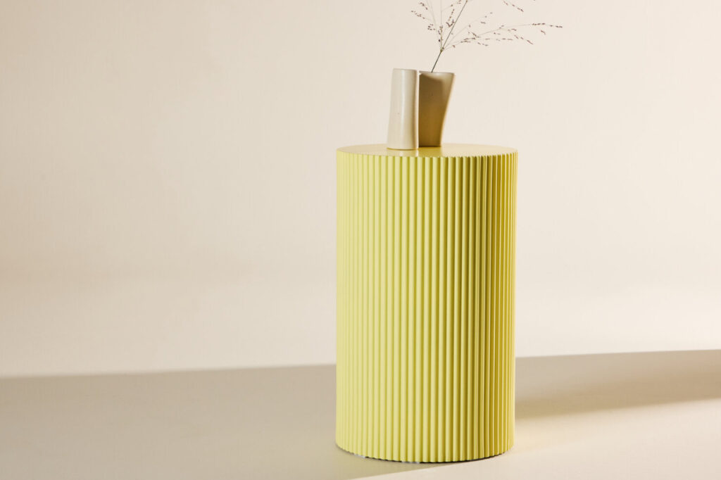Rifliuotas šoninis paviršius yra vienas ryškiausių šio staliuko bruožų. Vertikalios linijos sukuria subtilų šešėlių žaismą, kuris keičiasi priklausomai nuo šviesos kritimo. Tai suteikia baldui gyvumo ir vizualinio gylio, todėl net ir vienspalvėje aplinkoje jis atrodo įdomiai ir stilingai. Ši tekstūra paverčia staliuką ne tik funkciniu baldu, bet ir dekoratyviniu objektu.