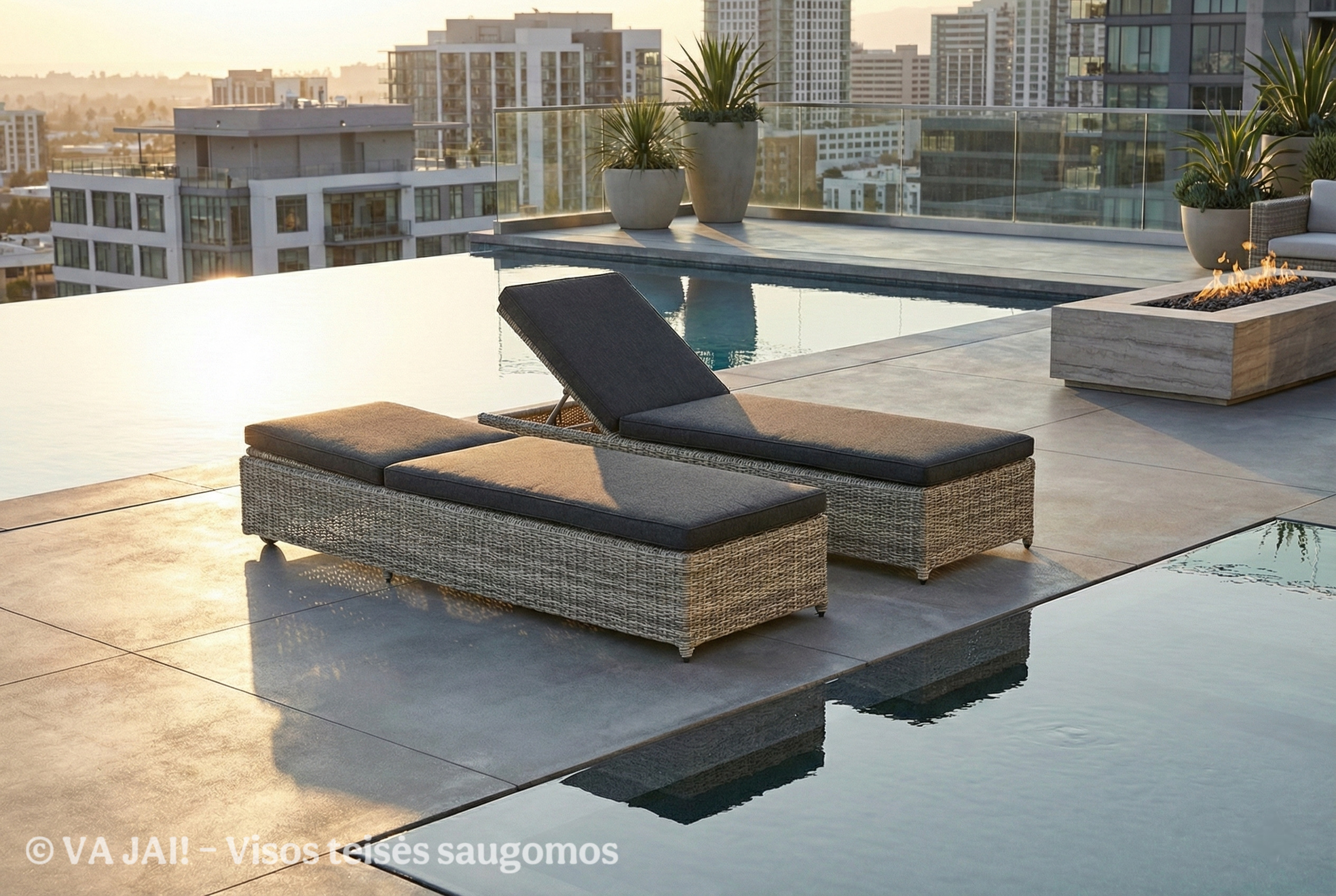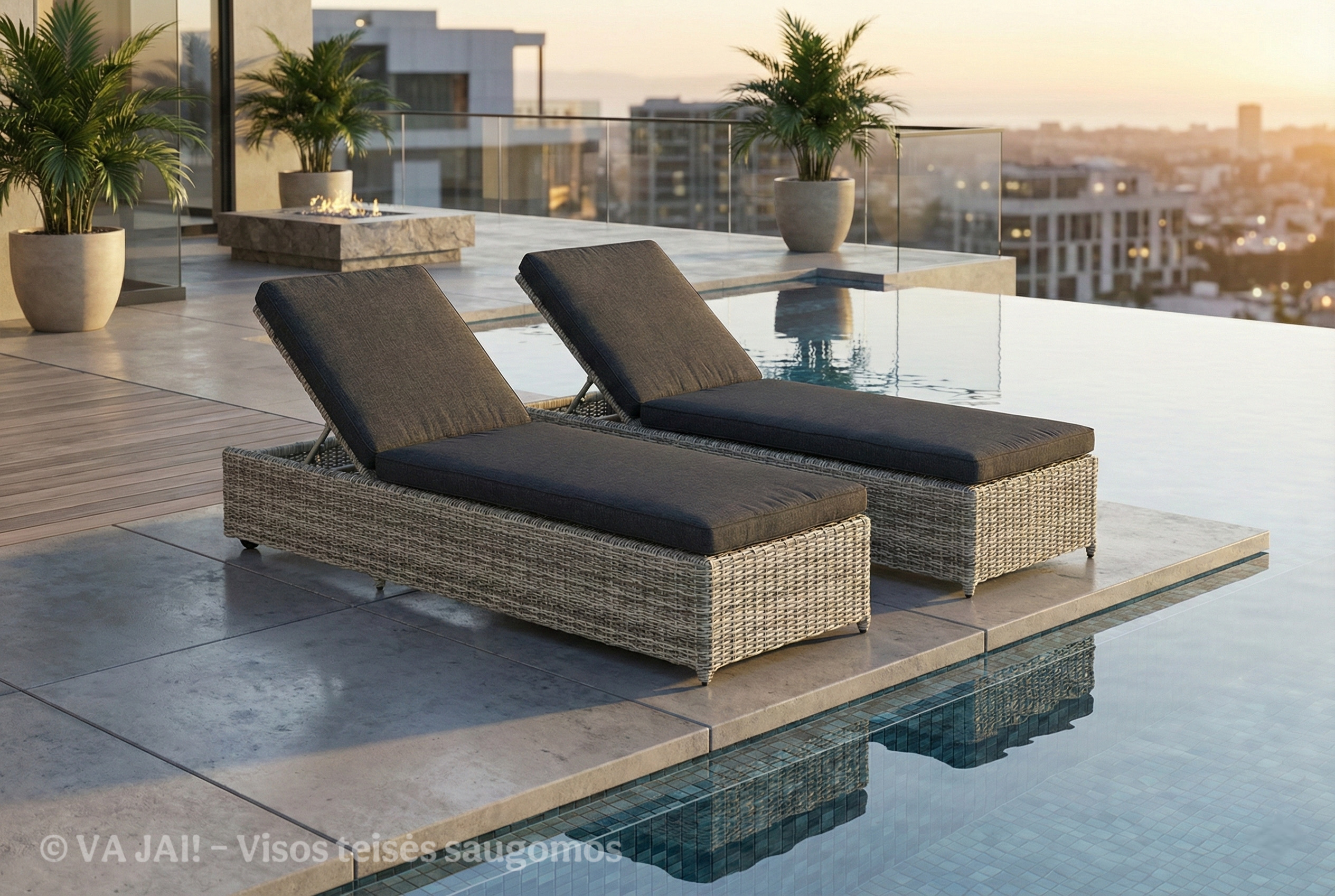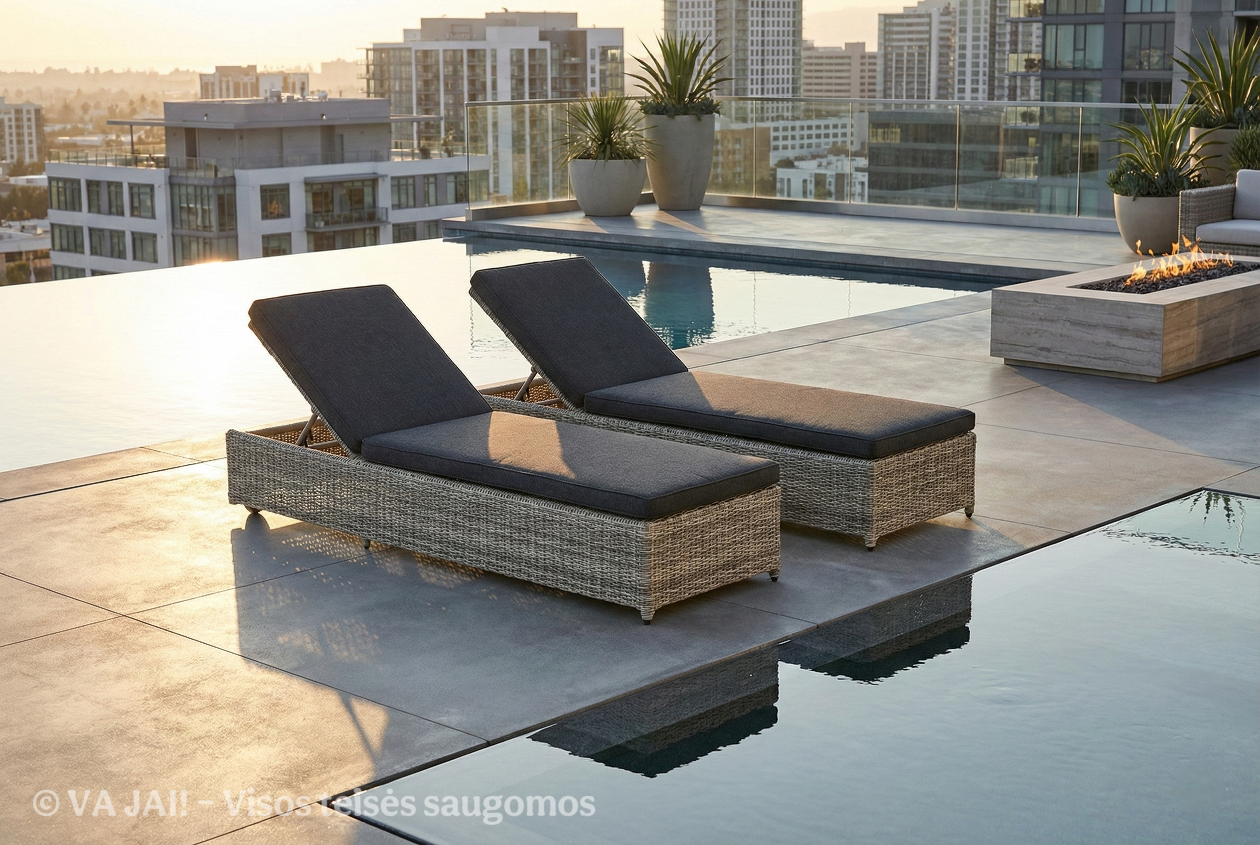Šie terasiniai gultai sukurti ne tik patogumui, bet ir estetinei ramybei. Jų dizainas neprimeta savęs – jis subtiliai papildo aplinką, leisdamas išryškėti augalams, terasos apdailai ar baseino zonai. Tai baldas, kuris atrodo tvarkingai, solidžiai ir labai „švariai“.