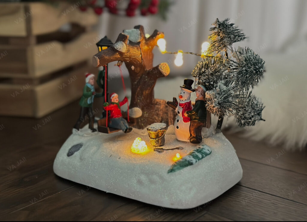 Šis miestelis nukelia į idilišką žiemos vakarą: apsnigtame kieme stovi didelis medis, šalia jo sukurtas šventinis kampelis – ant supynių sėdinti mergaitė, stumiamas berniuko, o už kelių žingsnių – sniego senis su juodu cilindru ir raudona šalika. Greta jo – pora, pasidžiaugusi ką tik nulipdytu sniego draugu. Dekoraciją vainikuoja sniegu apsikrovusi eglutė ir švelniai žėrinčios lemputės, primenančios Kalėdų stebuklą.