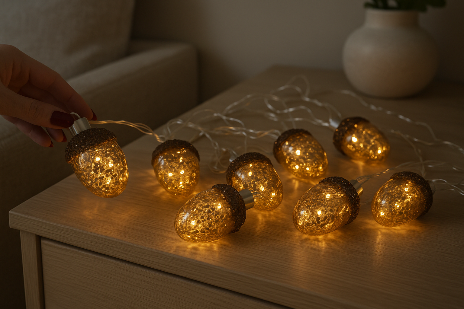 Šventės, jaukūs vakarai ir ypatingos akimirkos – visa tai tampa dar magiškesnė, kai erdvę papildo subtilus apšvietimas. Stiklinės dekoratyvinės LED lemputės „Gilės“ – tai daugiau nei tiesiog girlianda. Tai elegantiška, natūralios gamtos įkvėpta dekoracija, kuri pripildo namus šilumos, prabangos ir ypatingo jaukumo.