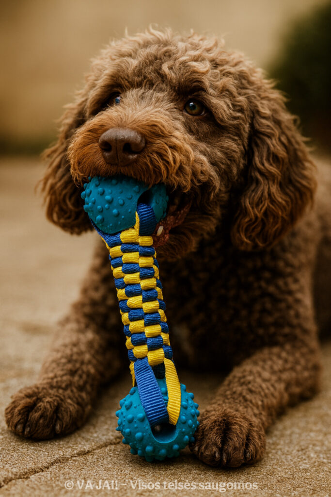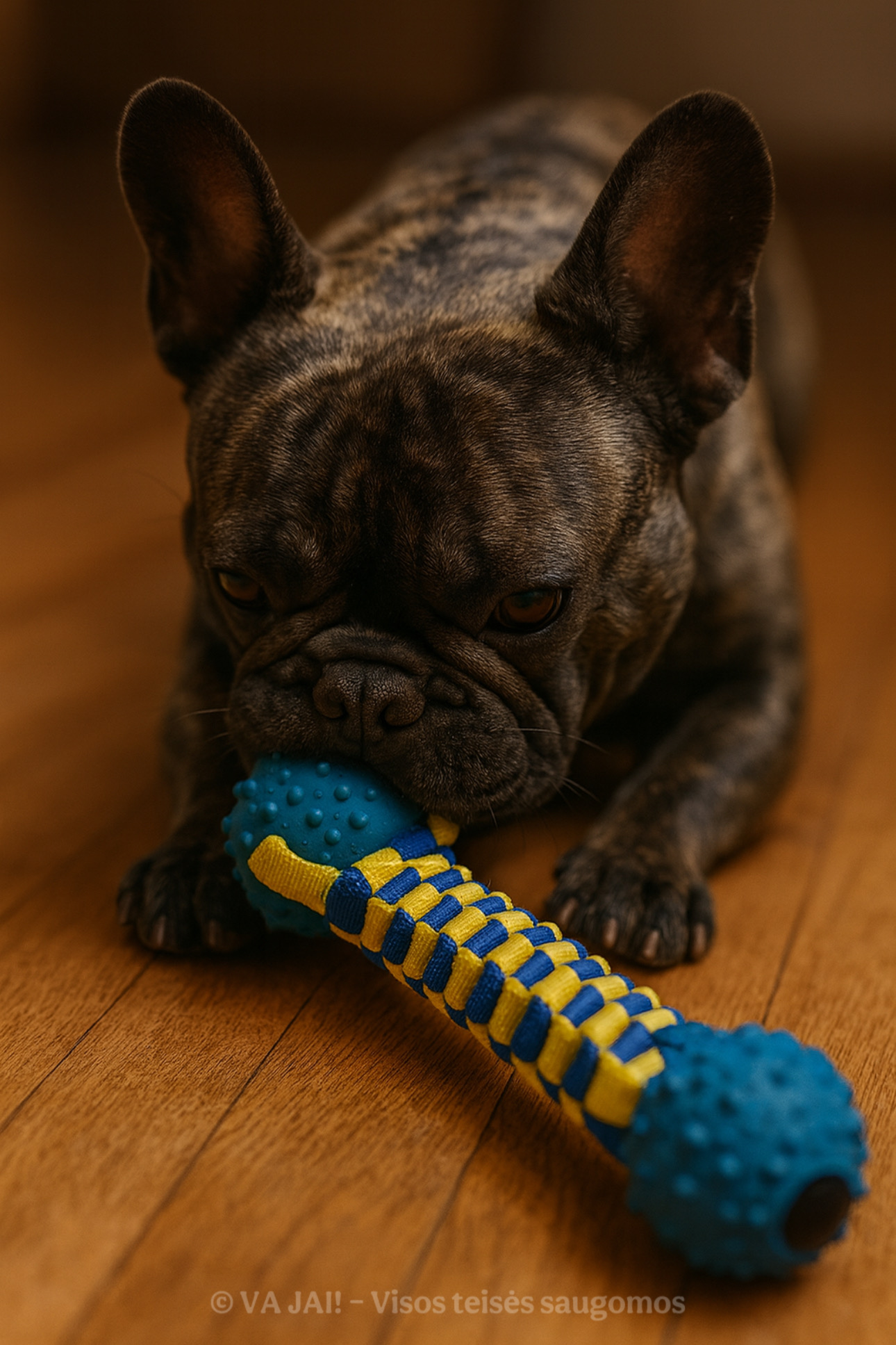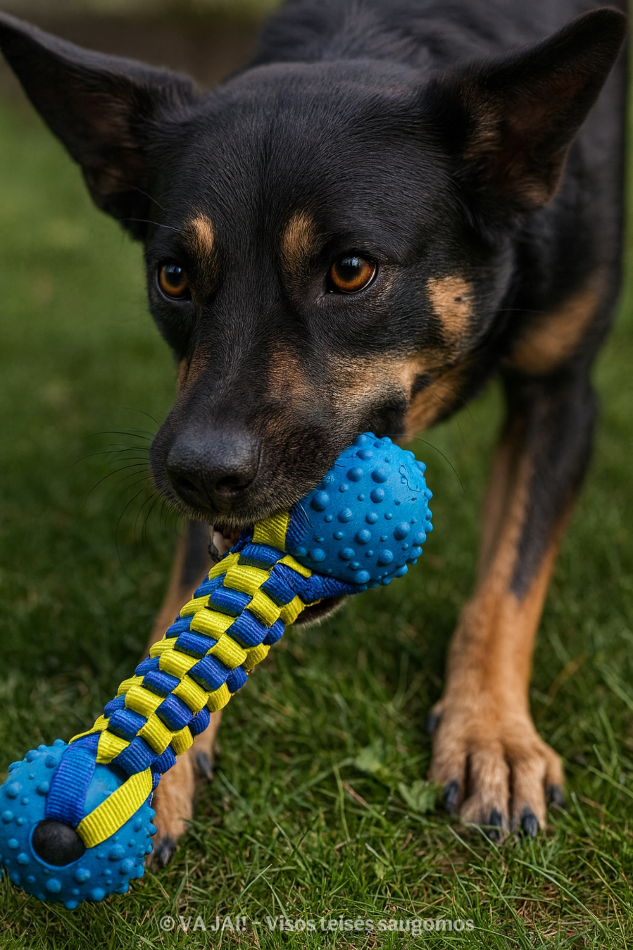 Dar vienas svarbus privalumas – ergonomiška forma, kuri leidžia šuniui patogiai laikyti žaislą dantyse. Tai ypač matosi realiose nuotraukose – šuo natūraliai mėgaujasi žaislo tekstūra ir forma. Tai reiškia, kad žaislas yra ne tik funkcionalus, bet ir tikrai malonus šuniui.